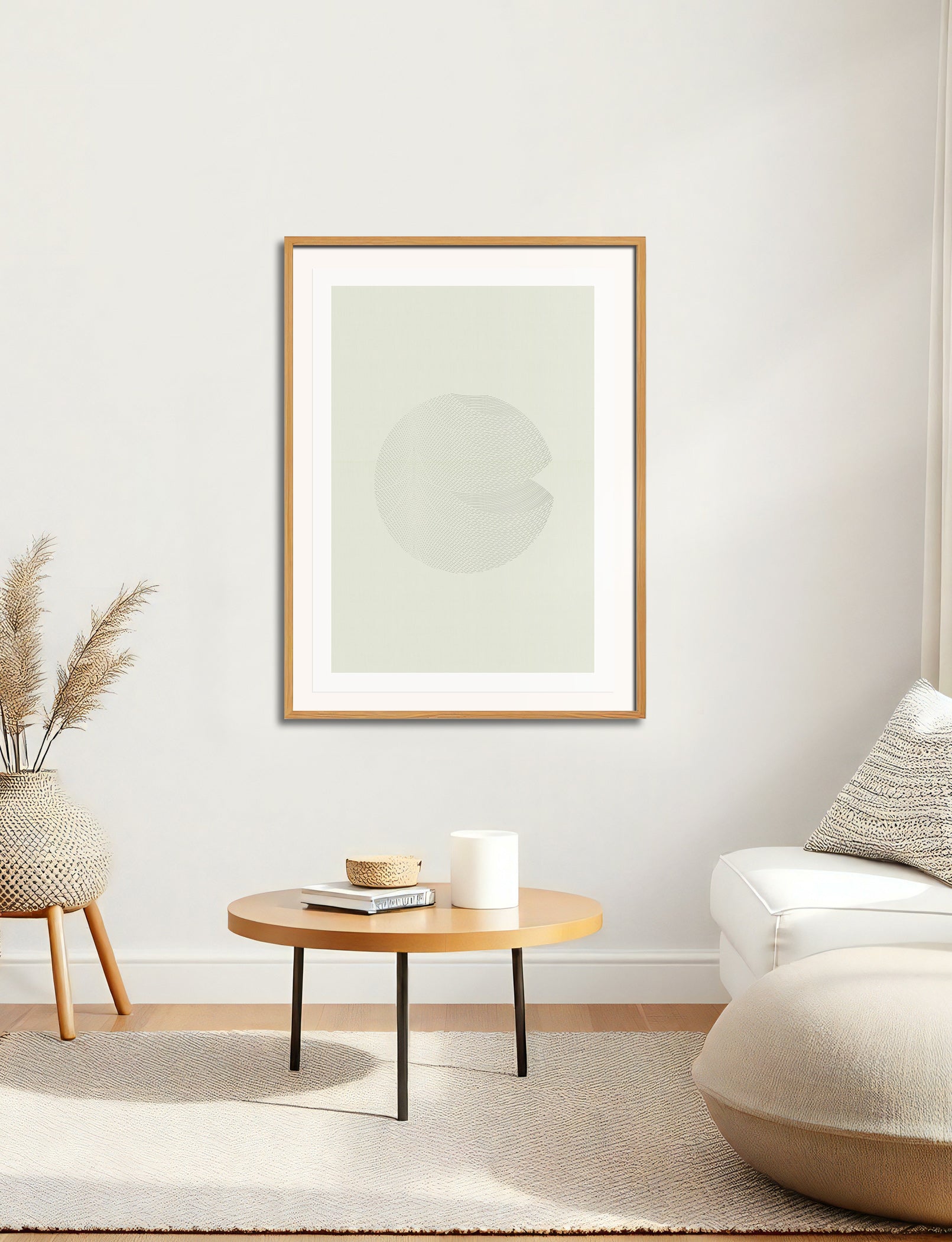 The image with the framed artwork is a simulation to provide a general sense of scale and framing options, suggesting a 10-15cm margin between the artwork and the frame, which could be achieved with a passpartout, or a foam on the background.