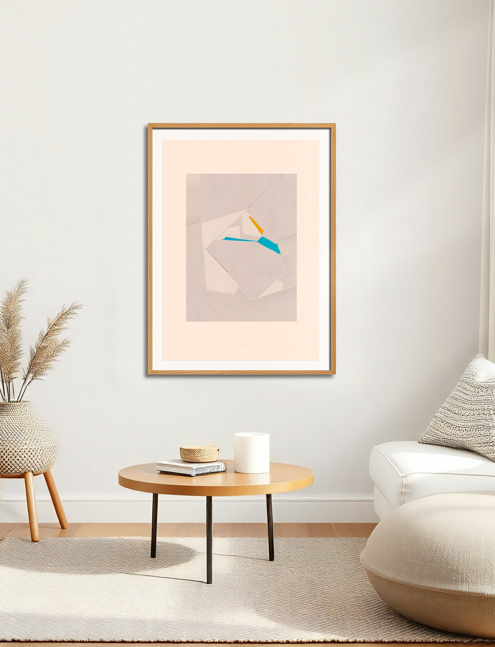 The image with the framed artwork is a simulation to provide a general sense of scale and framing options, suggesting a 10-15cm margin between the artwork and the frame, which could be achieved with a passpartout, or a foam on the background.