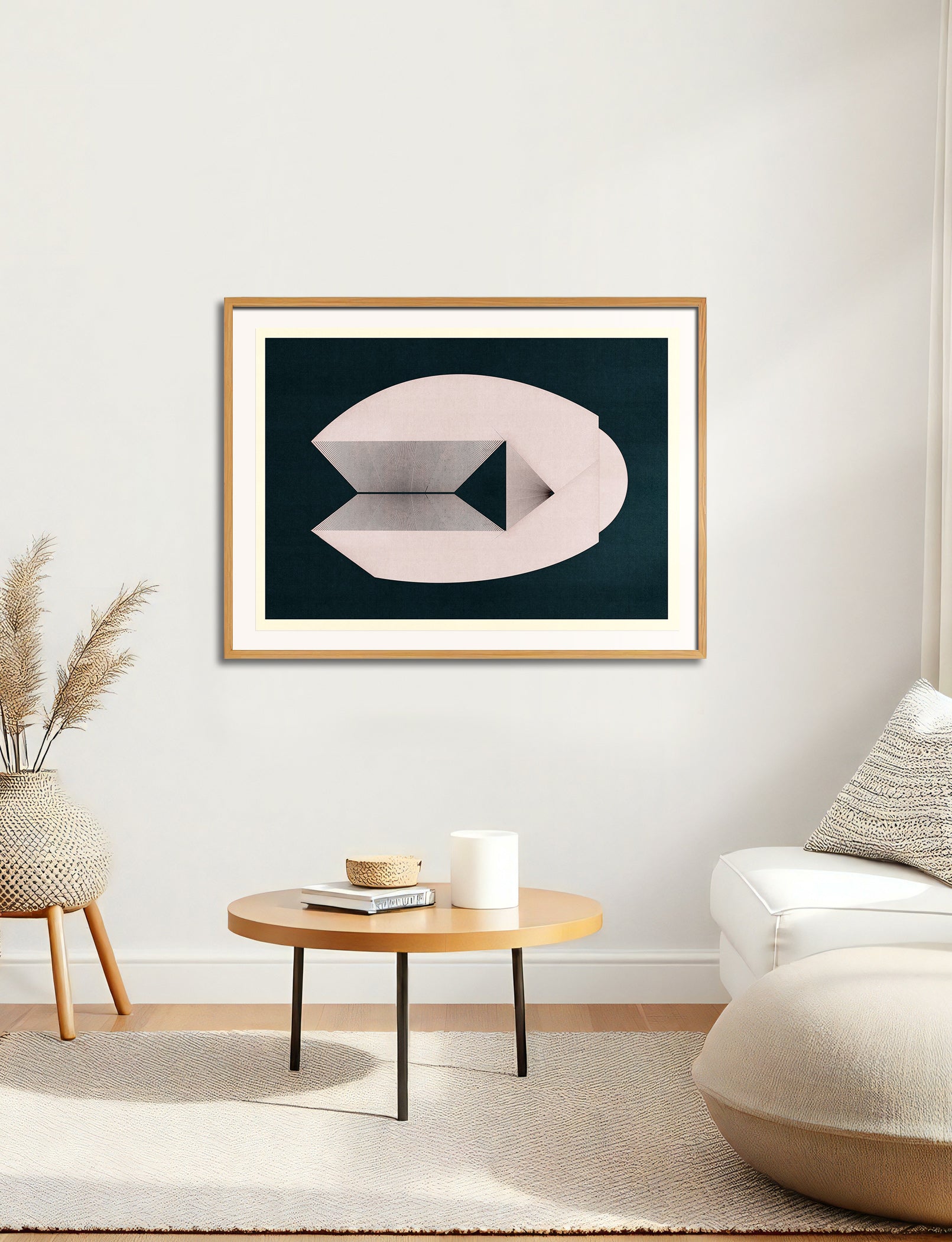 The image with the framed artwork is a simulation to provide a general sense of scale and framing options, suggesting a 10-15cm margin between the artwork and the frame, which could be achieved with a passpartout, or a foam on the background.