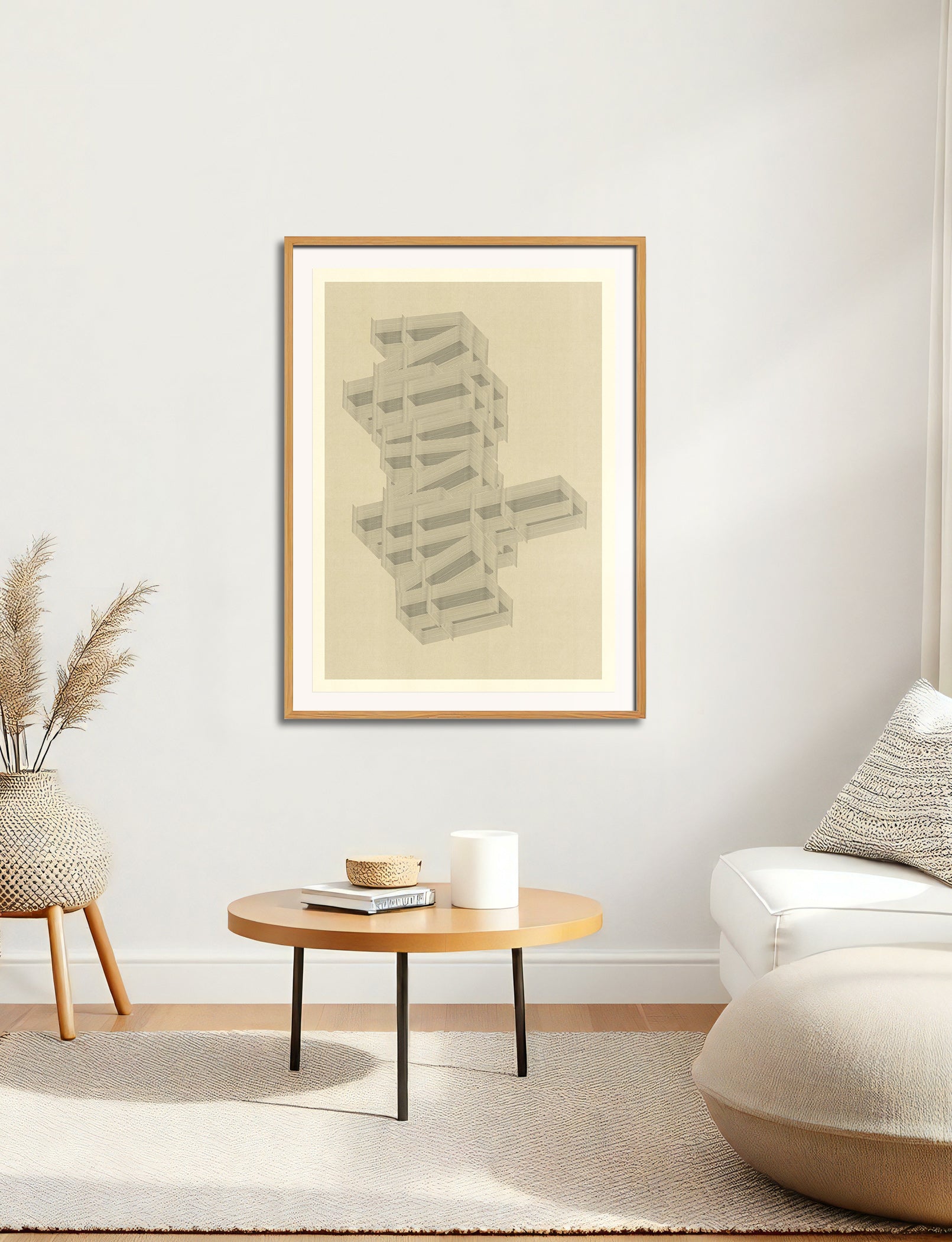 The image with the framed artwork is a simulation to provide a general sense of scale and framing options, suggesting a 10-15cm margin between the artwork and the frame, which could be achieved with a passpartout, or a foam on the background.