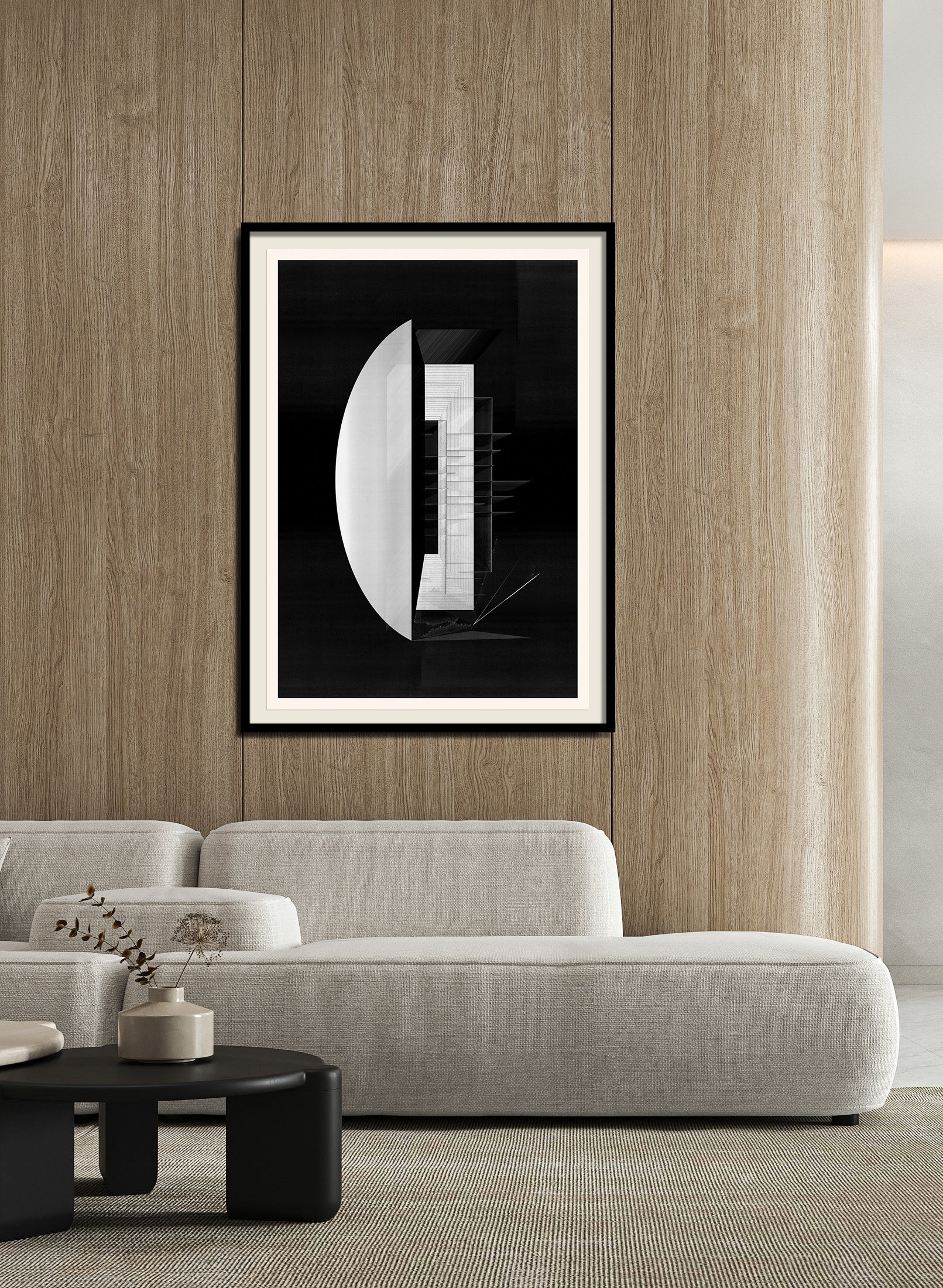 The image with the framed artwork is a simulation to provide a general sense of scale and framing options, suggesting a 10-15cm margin between the artwork and the frame, which could be achieved with a passpartout, or a foam on the background.