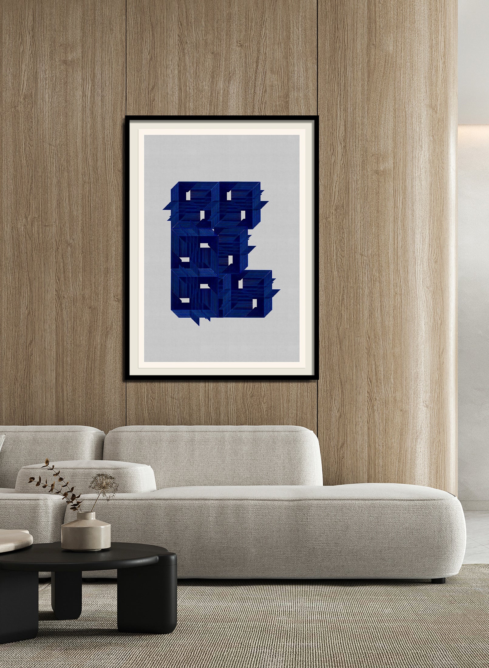 The image with the framed artwork is a simulation to provide a general sense of scale and framing options, suggesting a 10-15cm margin between the artwork and the frame, which could be achieved with a passpartout, or a foam on the background.