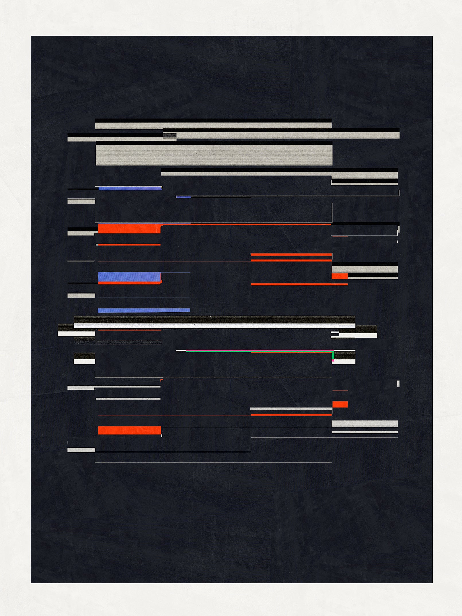 This collection comprises a series of artworks of varying sizes that explore abstract compositions through digital tools. I combine hand-drawn and scanned elements with computer-generated graphics to create compositions that interweave geometry, space, silence, and form.