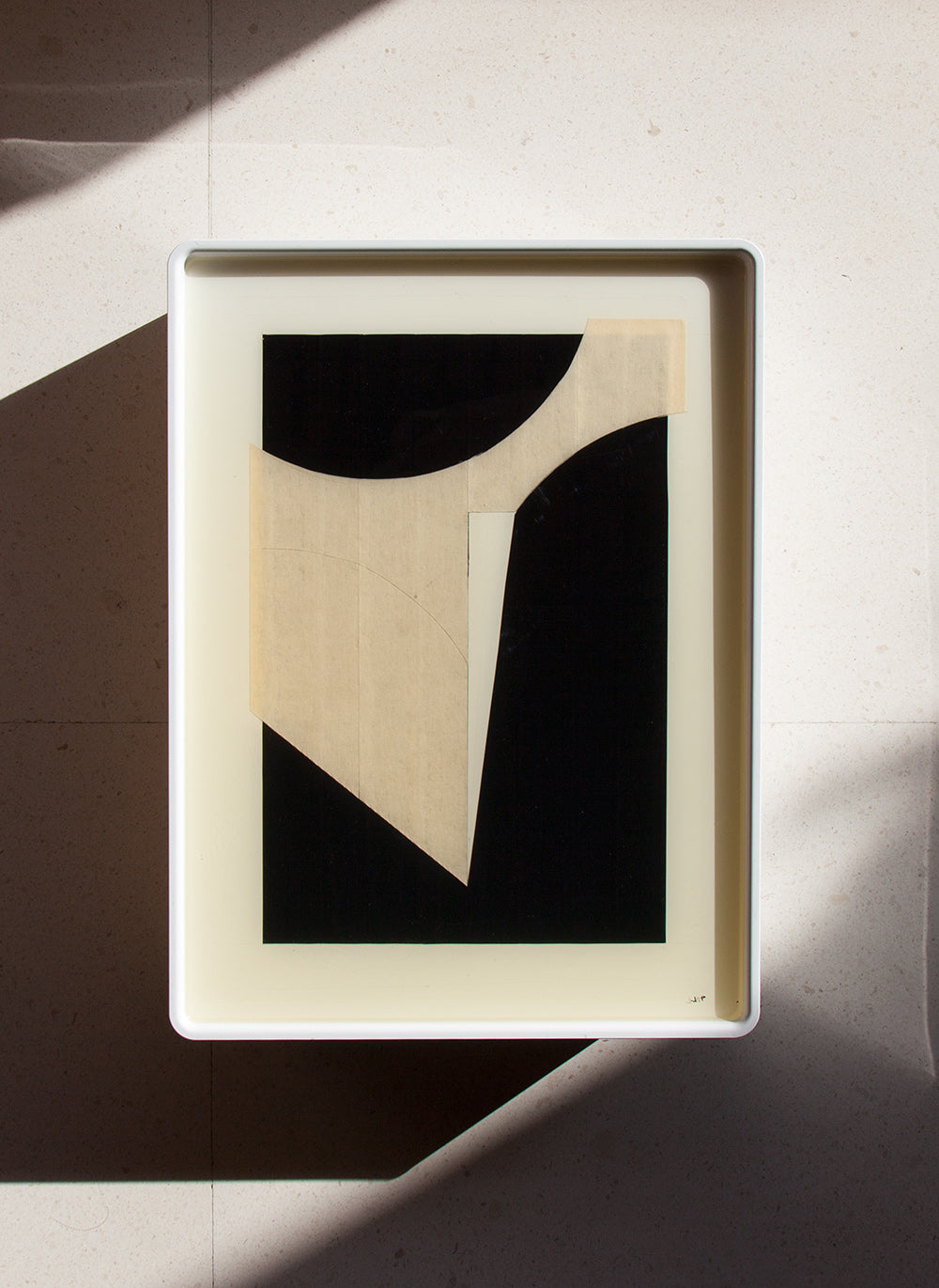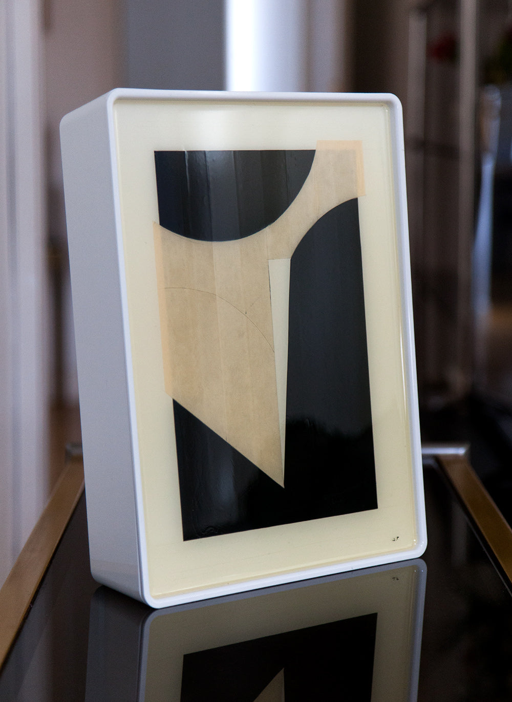 A series of artworks created using Ikea PVC boxes as a support, exploring a variety of mixed media techniques that combine collage, ink drawing, and resin. The resin is used both to seal the composition and to create subtle layers of depth, often resulting in irregular and imperfect finishes that embrace the experimental nature of the medium.