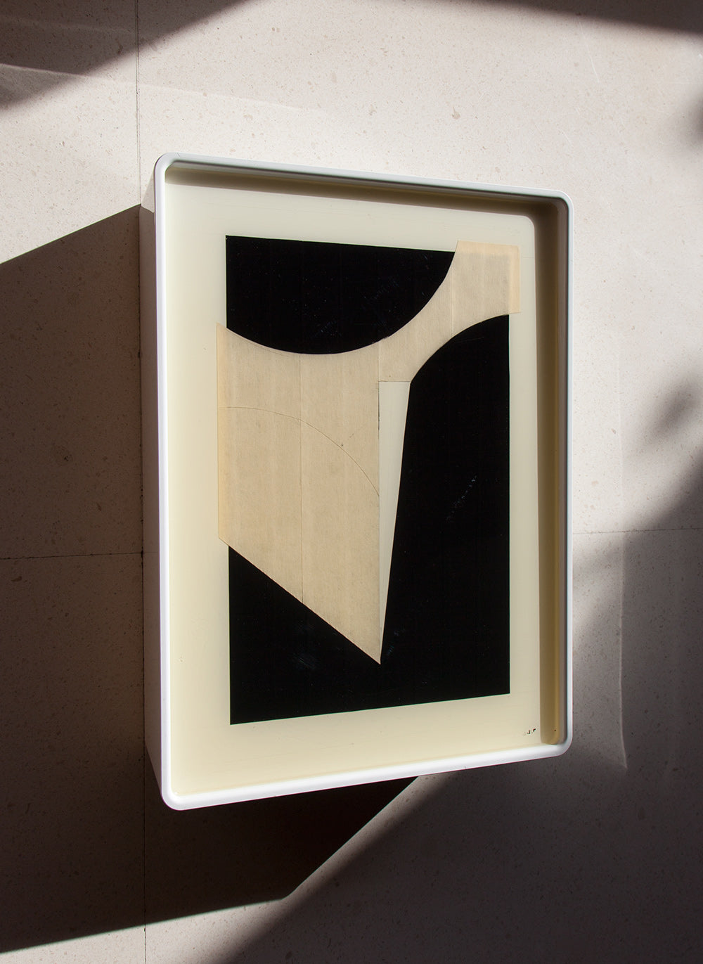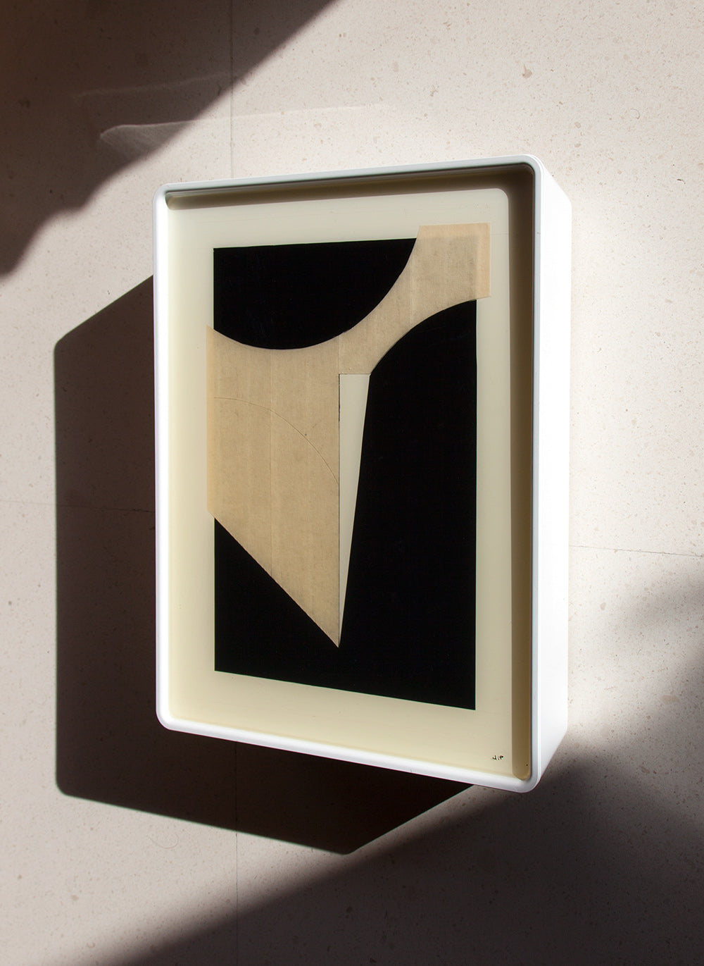 The pieces are designed to be both wall-mounted and free-standing, with the box's unique shape allowing for a gentle incline that enhances the viewing experience.
