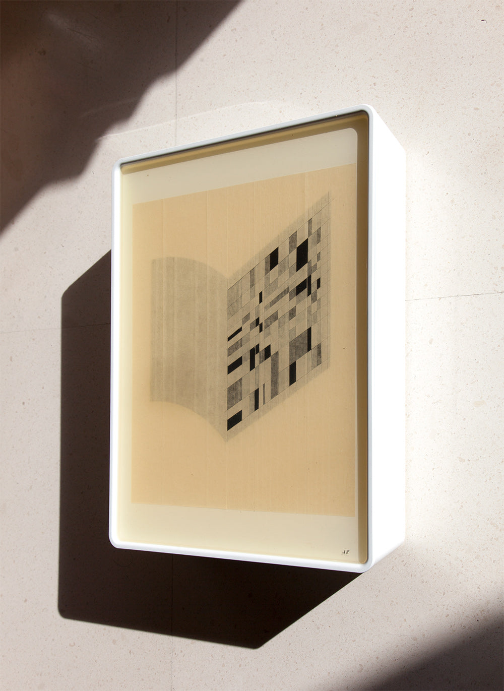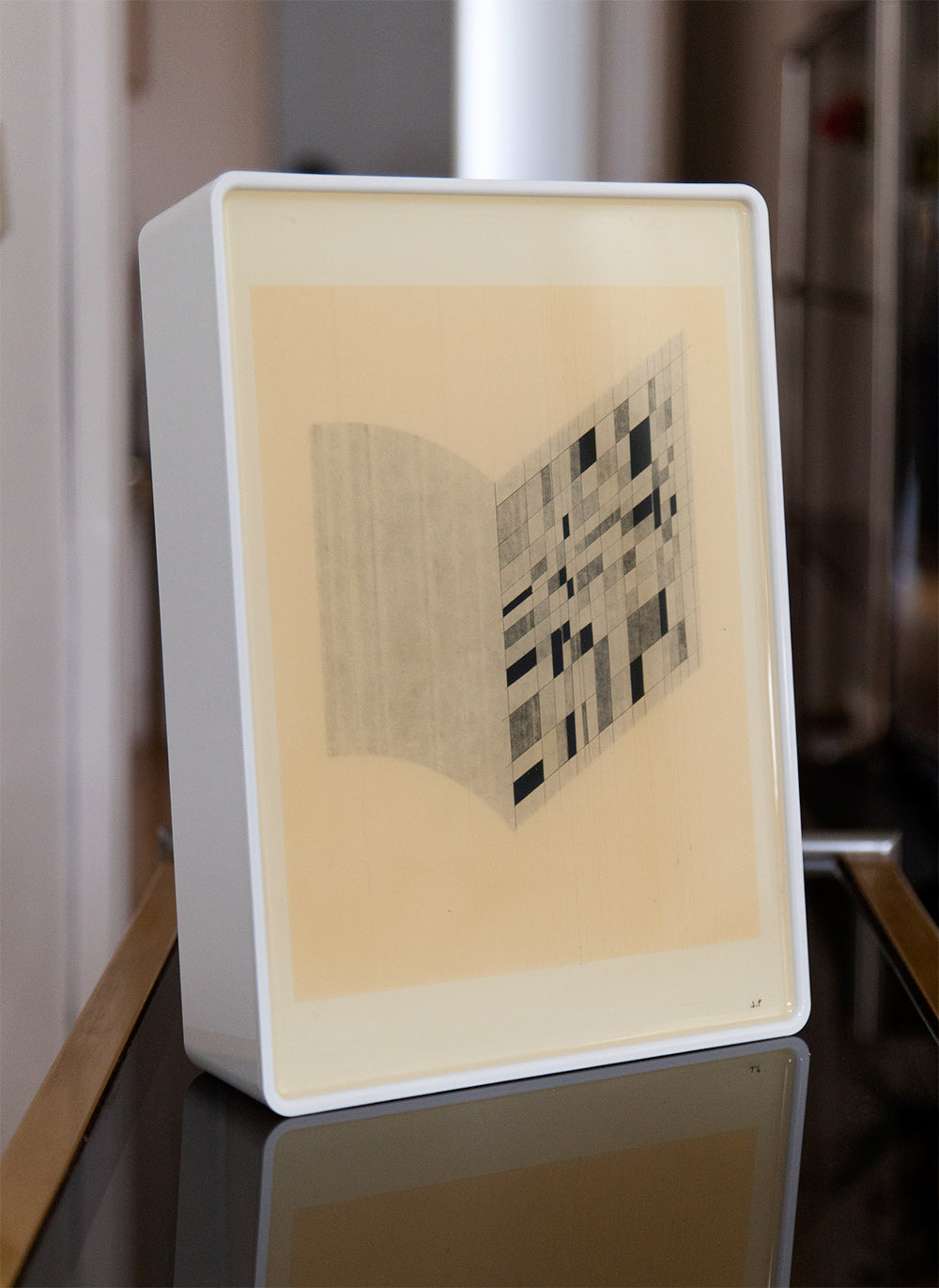 The pieces are designed to be both wall-mounted and free-standing, with the box's unique shape allowing for a gentle incline that enhances the viewing experience.