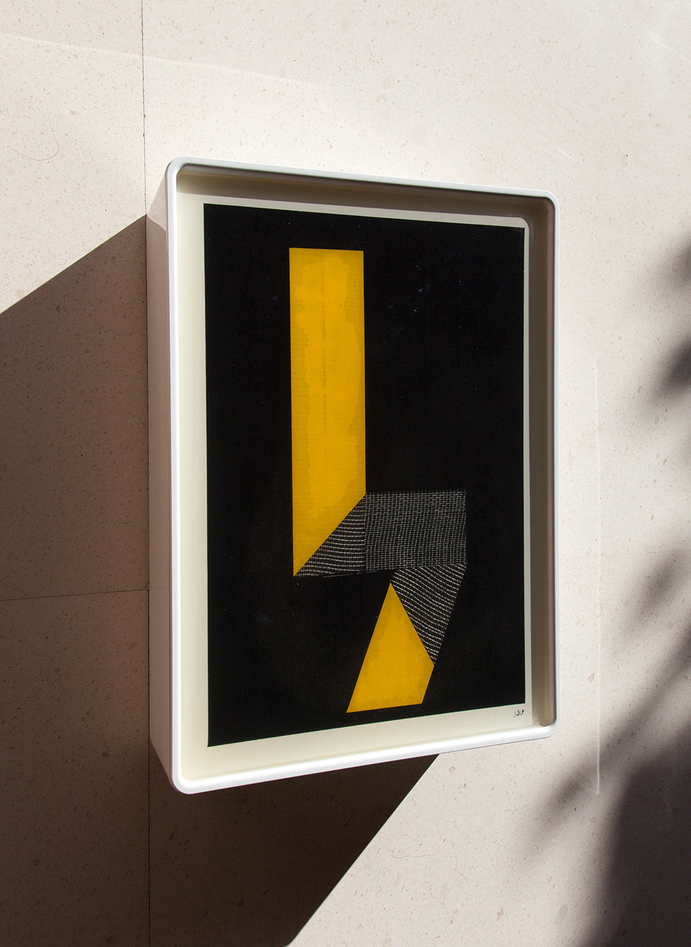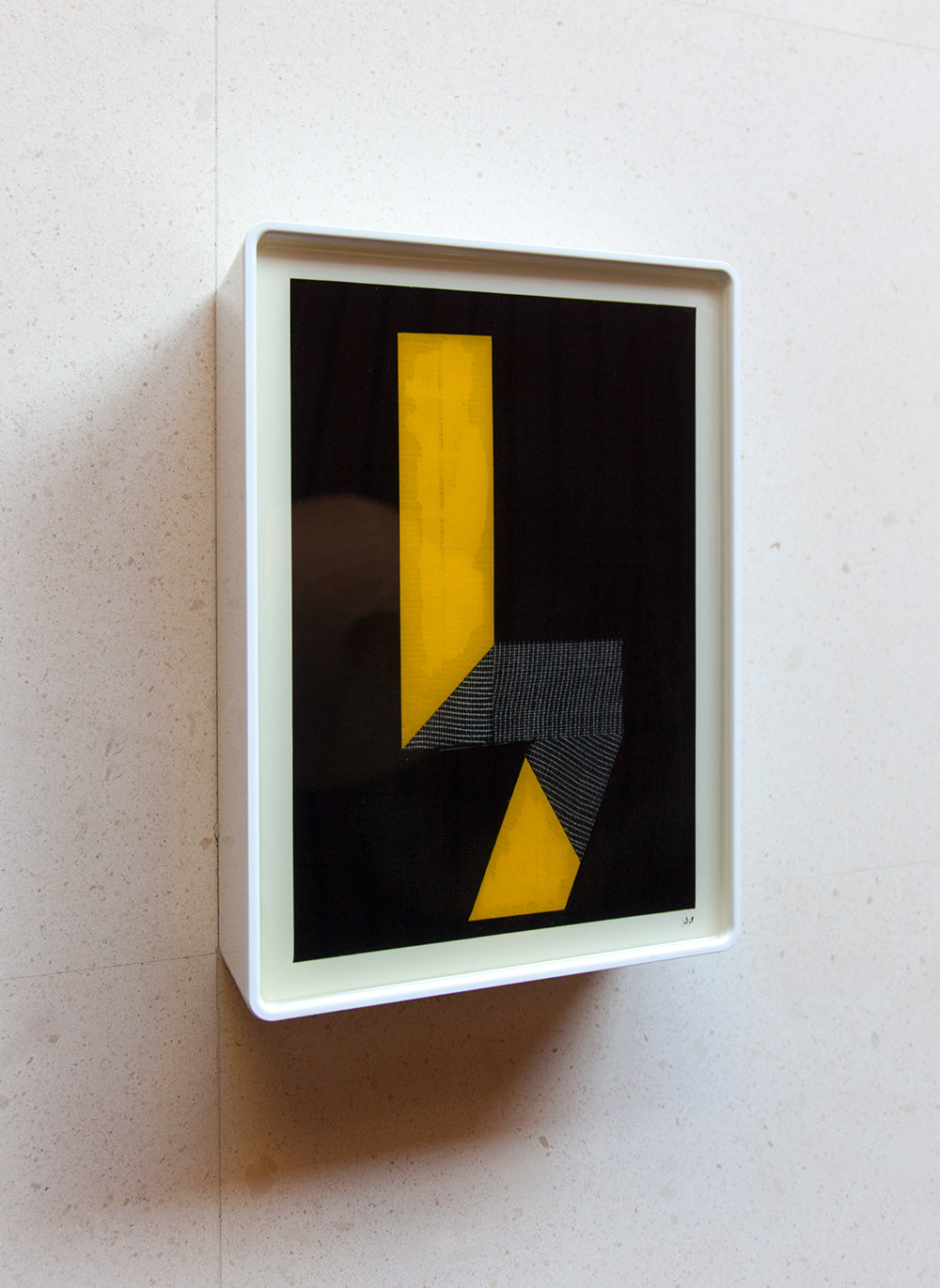 The pieces are designed to be both wall-mounted and free-standing, with the box's unique shape allowing for a gentle incline that enhances the viewing experience.