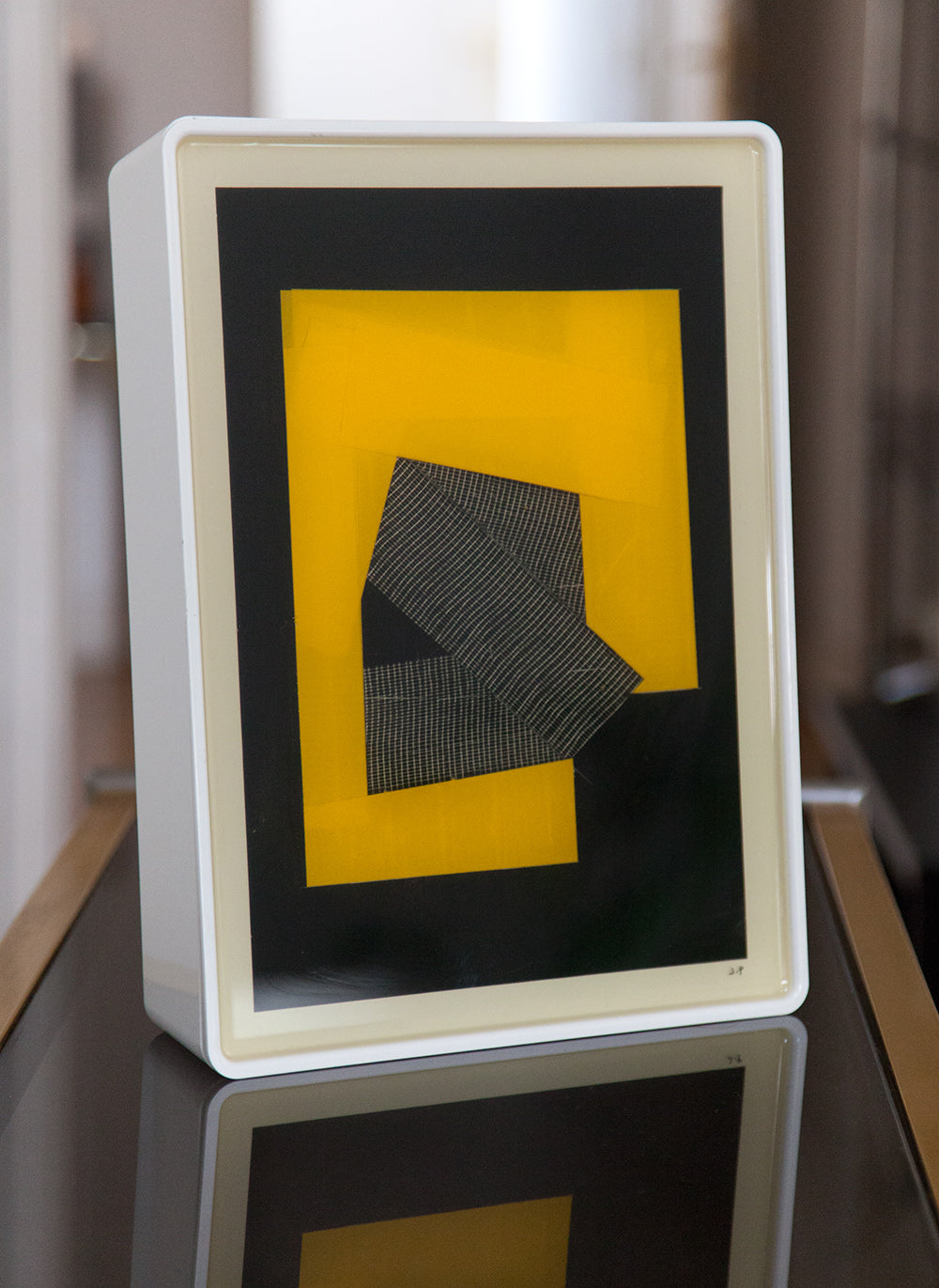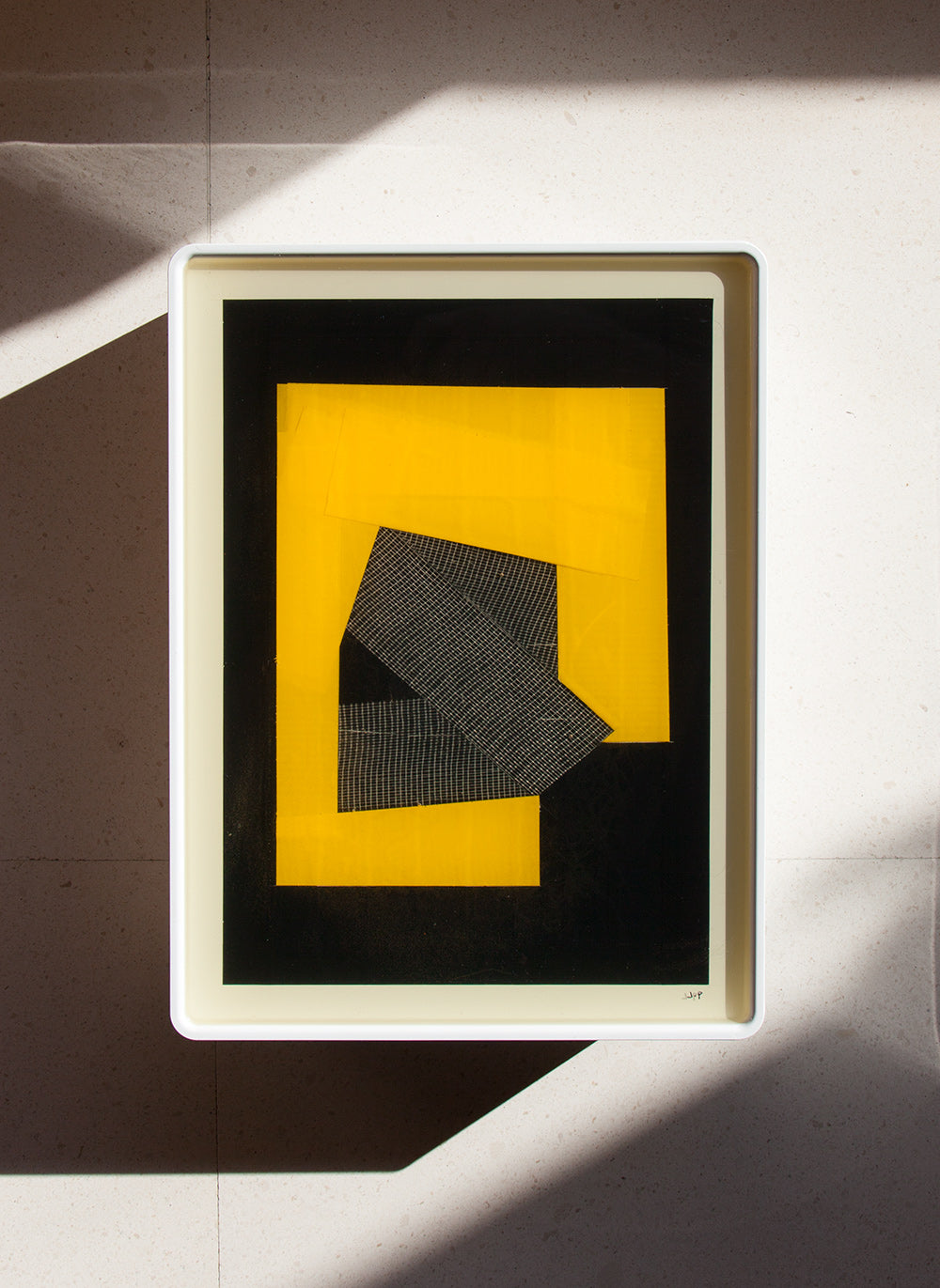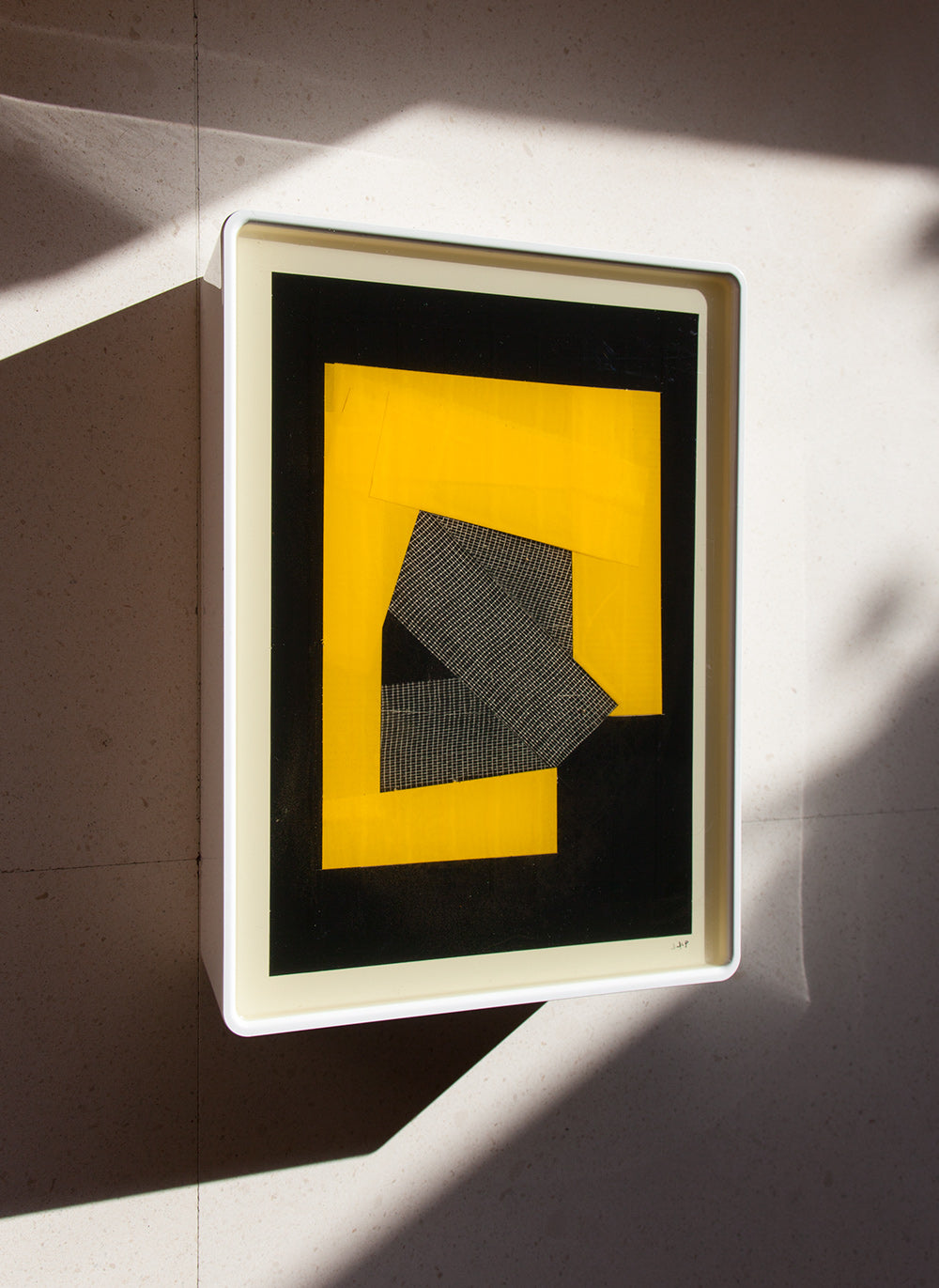 A series of artworks created using Ikea PVC boxes as a support, exploring a variety of mixed media techniques that combine collage, ink drawing, and resin. The resin is used both to seal the composition and to create subtle layers of depth, often resulting in irregular and imperfect finishes that embrace the experimental nature of the medium.