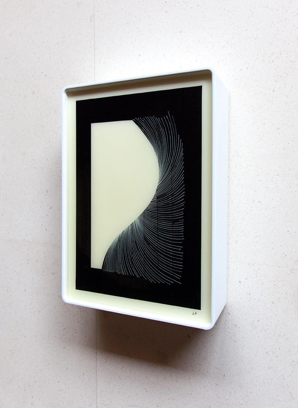 A series of artworks created using Ikea PVC boxes as a support, exploring a variety of mixed media techniques that combine collage, ink drawing, and resin. The resin is used both to seal the composition and to create subtle layers of depth, often resulting in irregular and imperfect finishes that embrace the experimental nature of the medium.