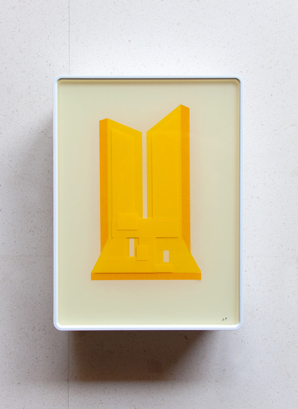 A series of artworks created using Ikea PVC boxes as a support, exploring a variety of mixed media techniques that combine collage, ink drawing, and resin. The resin is used both to seal the composition and to create subtle layers of depth, often resulting in irregular and imperfect finishes that embrace the experimental nature of the medium.