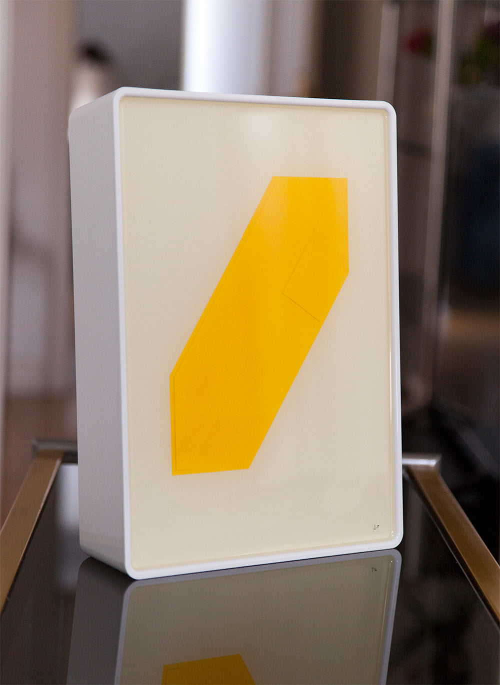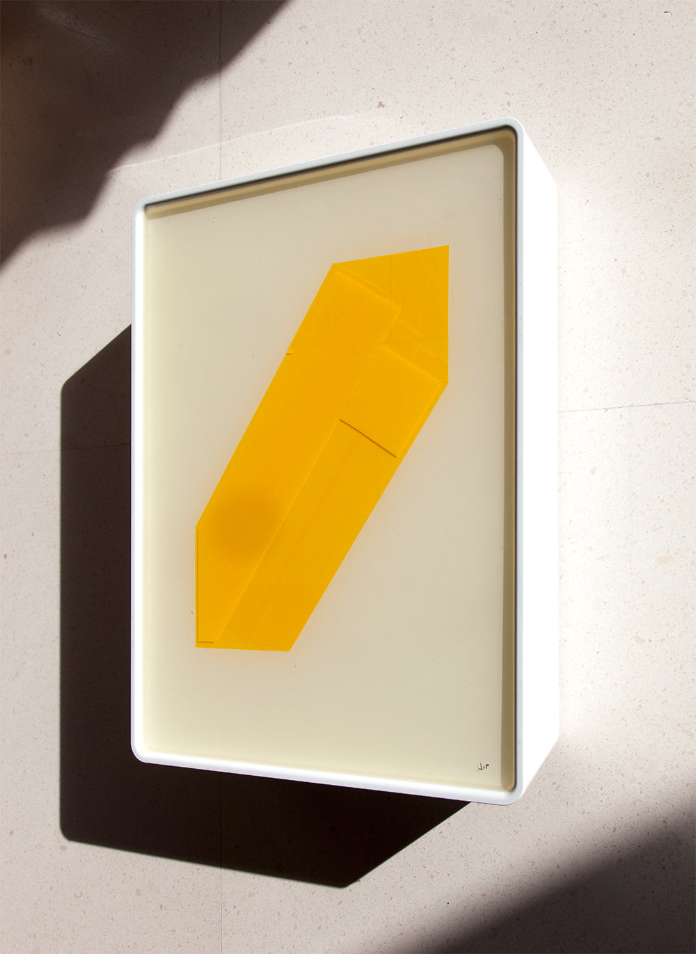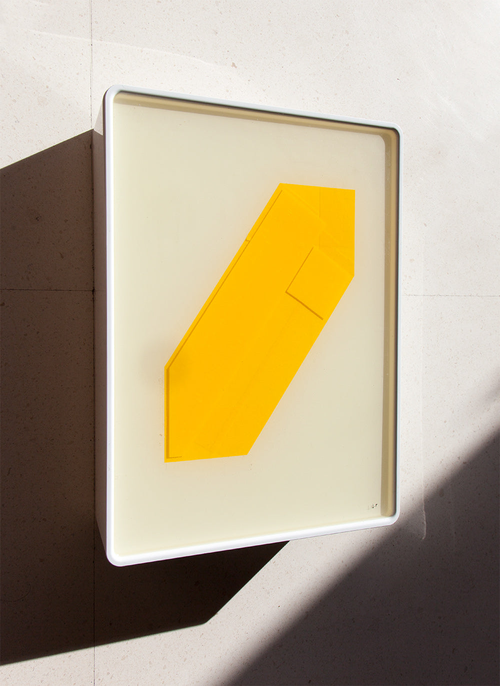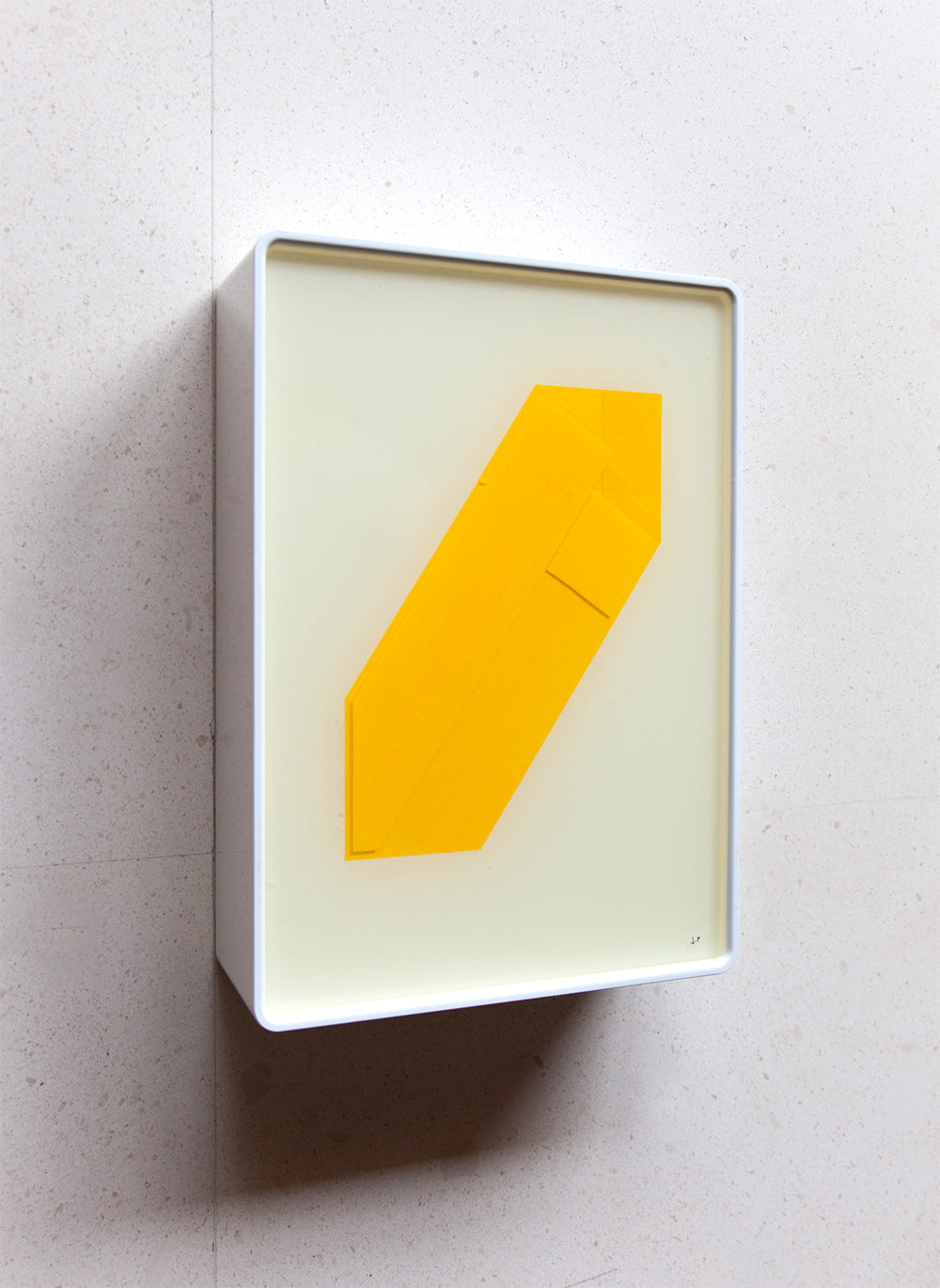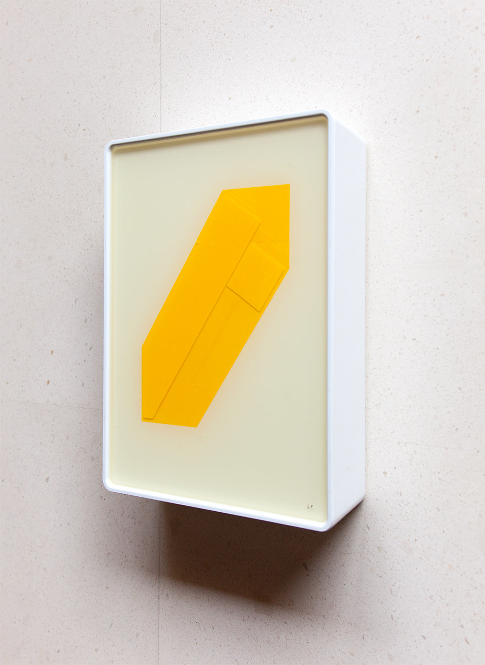 The pieces are designed to be both wall-mounted and free-standing, with the box's unique shape allowing for a gentle incline that enhances the viewing experience.