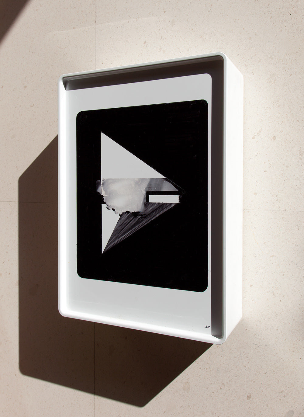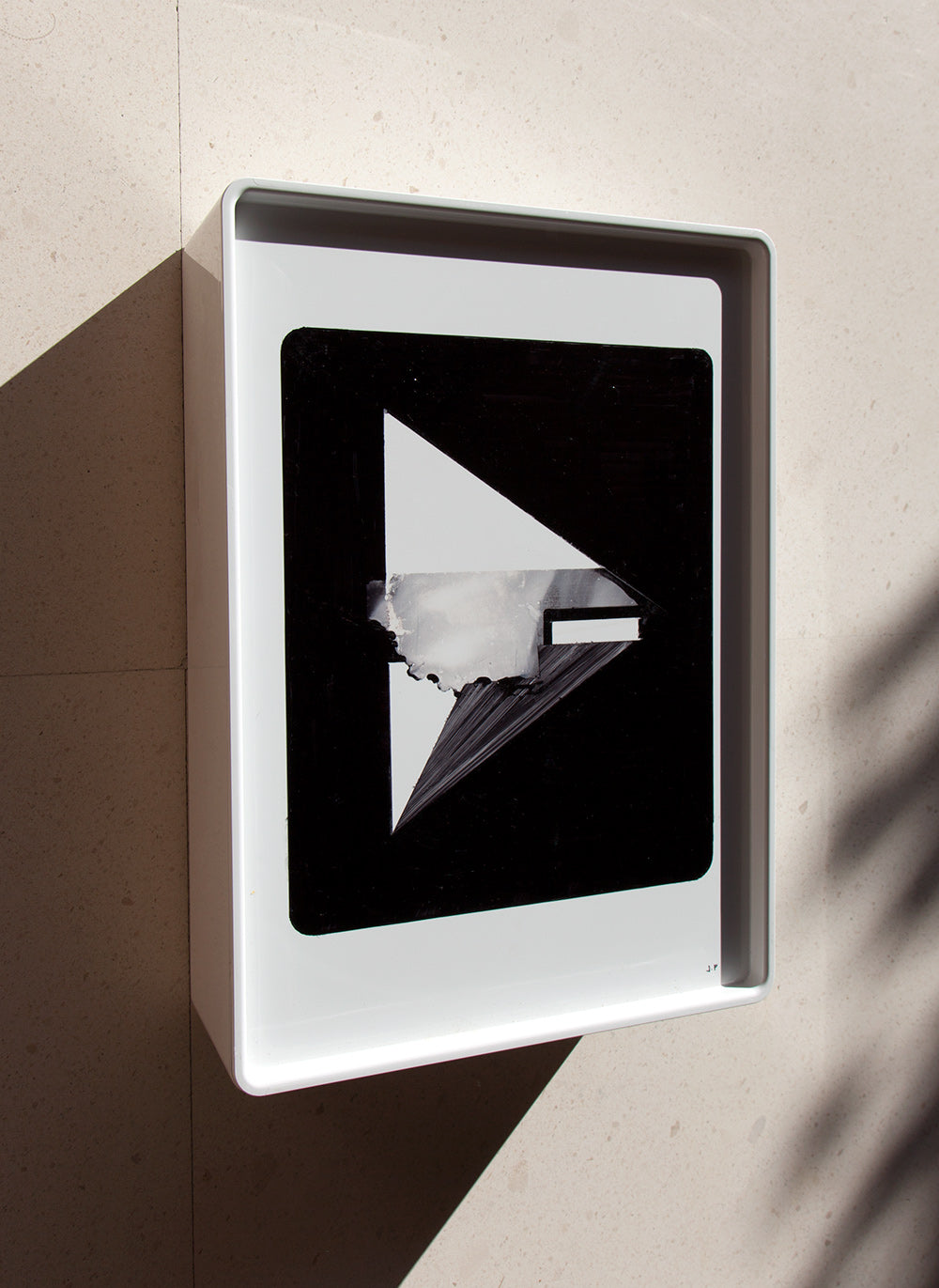 The pieces are designed to be both wall-mounted and free-standing, with the box's unique shape allowing for a gentle incline that enhances the viewing experience.