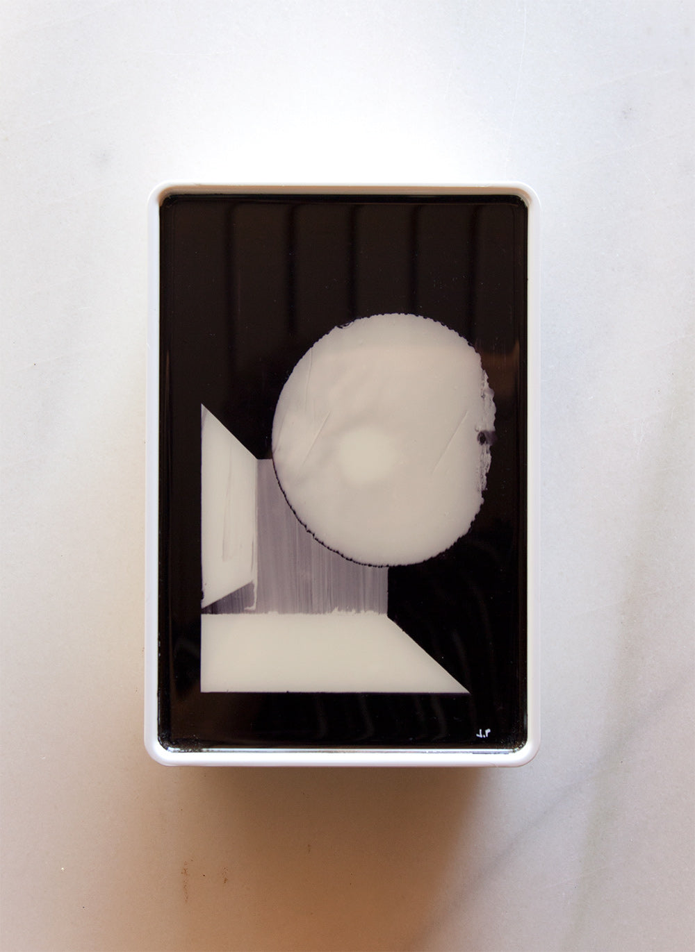 A series of artworks created using Ikea PVC boxes as a support, exploring a variety of mixed media techniques that combine collage, ink drawing, and resin. The resin is used both to seal the composition and to create subtle layers of depth, often resulting in irregular and imperfect finishes that embrace the experimental nature of the medium.