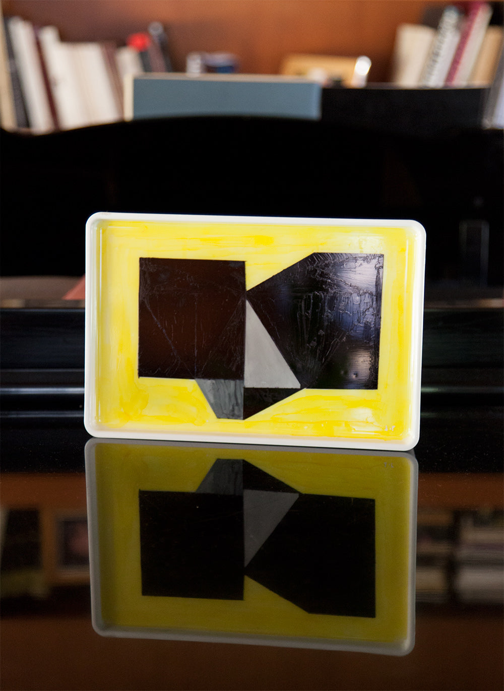 The pieces are designed to be both wall-mounted and free-standing, with the box's unique shape allowing for a gentle incline that enhances the viewing experience.