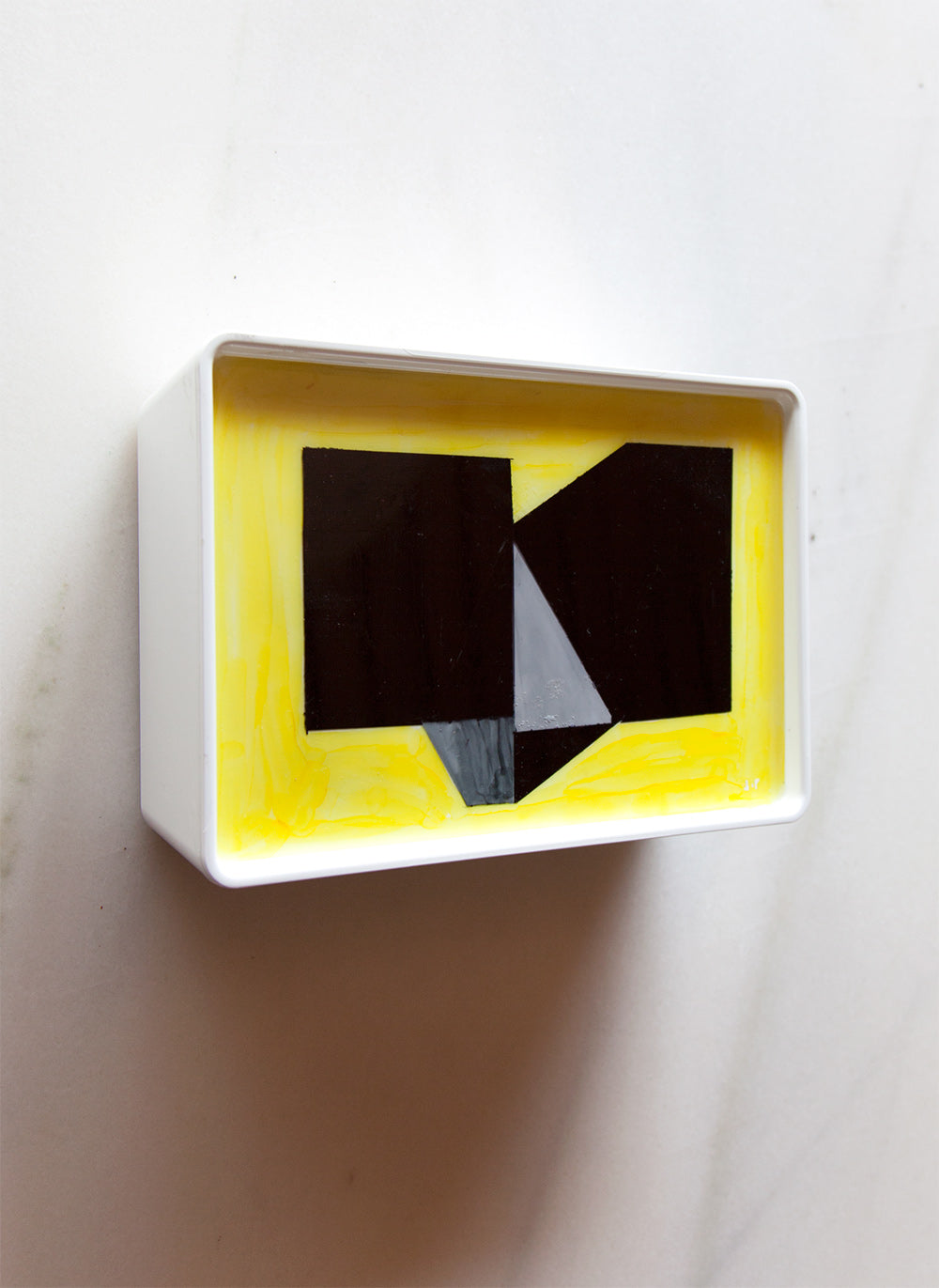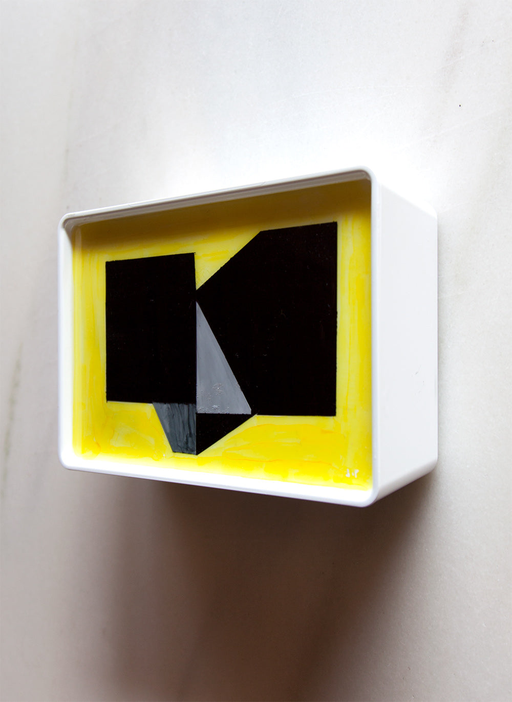 A series of artworks created using Ikea PVC boxes as a support, exploring a variety of mixed media techniques that combine collage, ink drawing, and resin. The resin is used both to seal the composition and to create subtle layers of depth, often resulting in irregular and imperfect finishes that embrace the experimental nature of the medium.