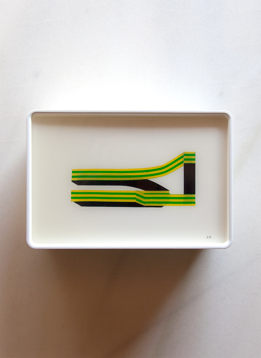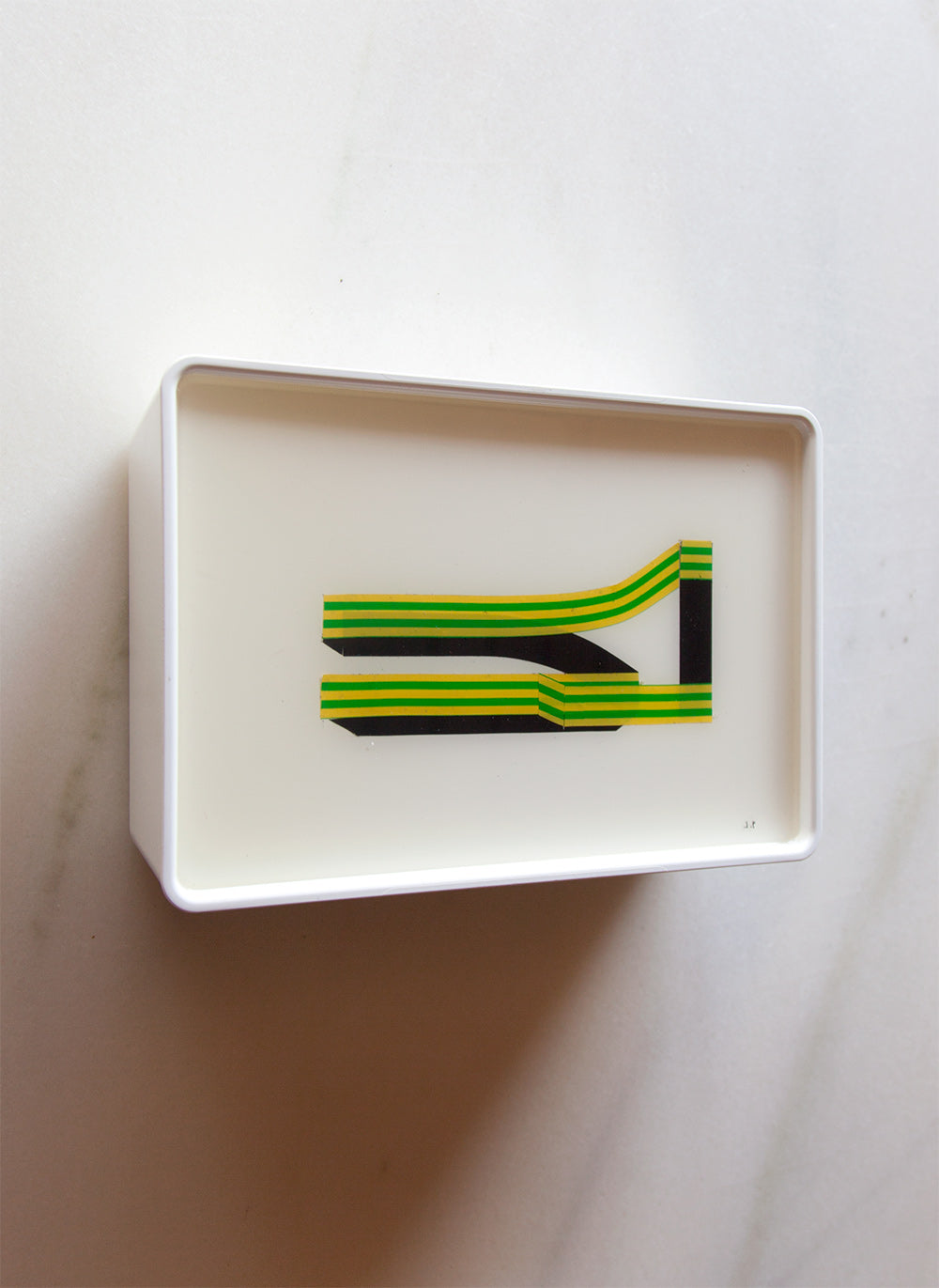 A series of artworks created using Ikea PVC boxes as a support, exploring a variety of mixed media techniques that combine collage, ink drawing, and resin. The resin is used both to seal the composition and to create subtle layers of depth, often resulting in irregular and imperfect finishes that embrace the experimental nature of the medium.