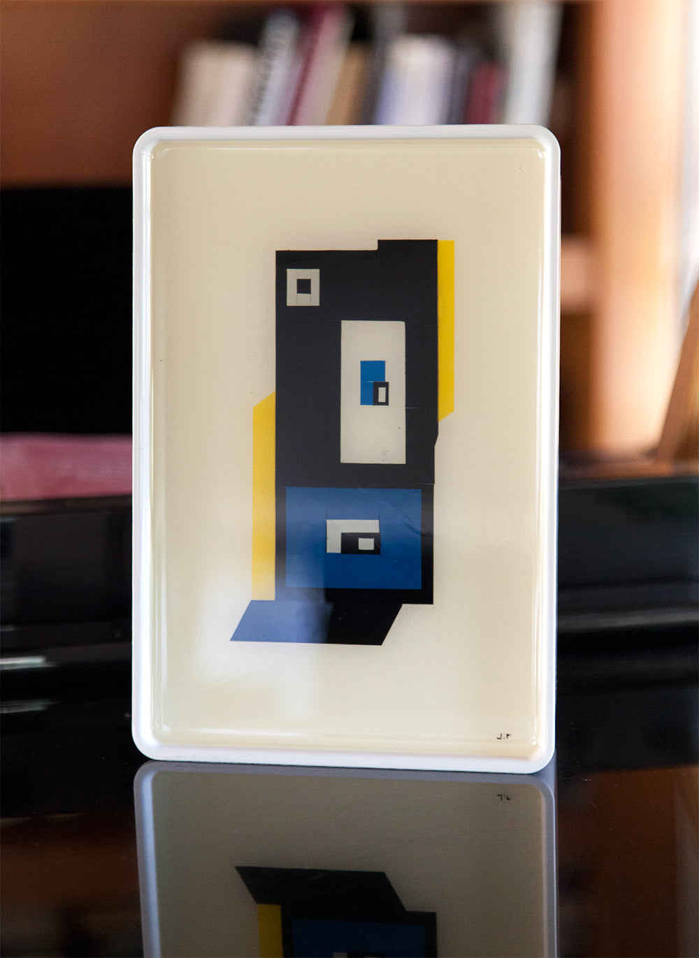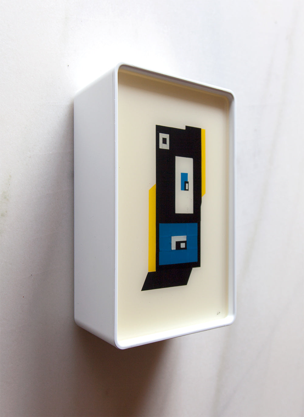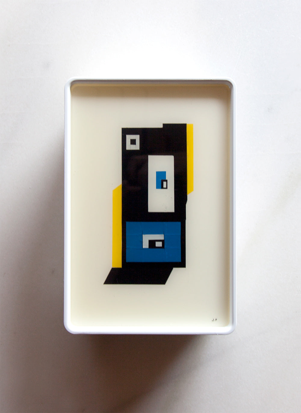 A series of artworks created using Ikea PVC boxes as a support, exploring a variety of mixed media techniques that combine collage, ink drawing, and resin. The resin is used both to seal the composition and to create subtle layers of depth, often resulting in irregular and imperfect finishes that embrace the experimental nature of the medium.