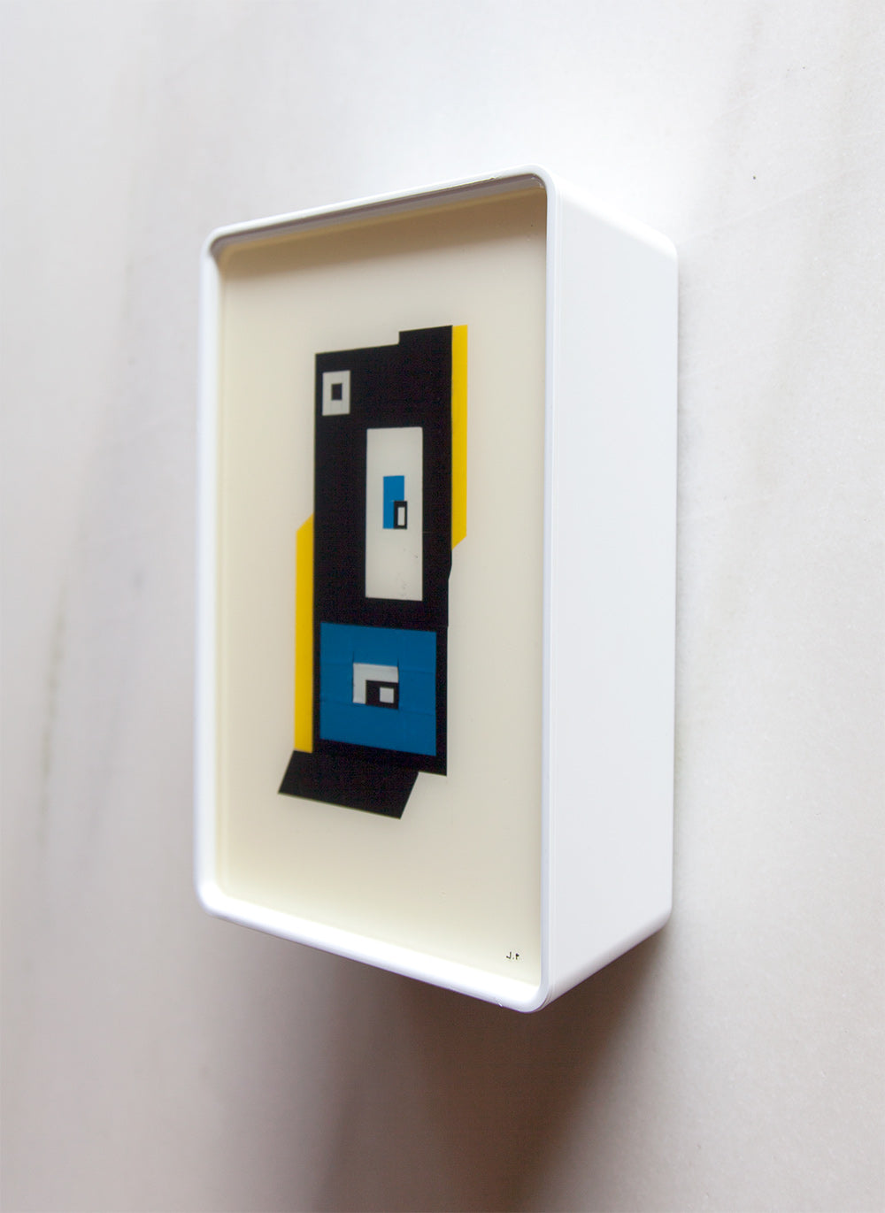 The pieces are designed to be both wall-mounted and free-standing, with the box's unique shape allowing for a gentle incline that enhances the viewing experience.