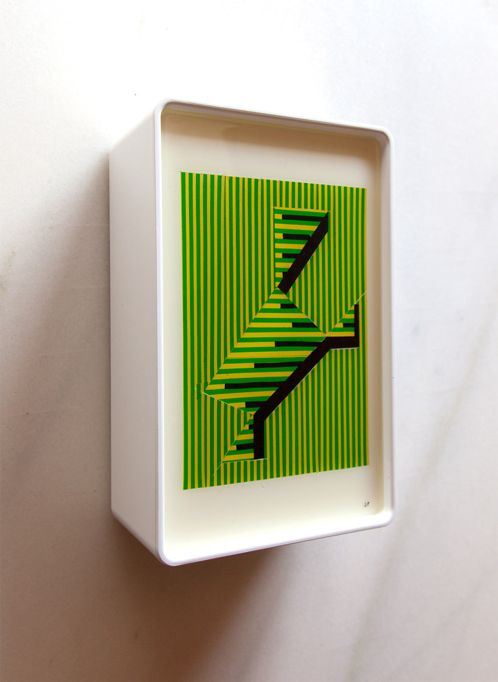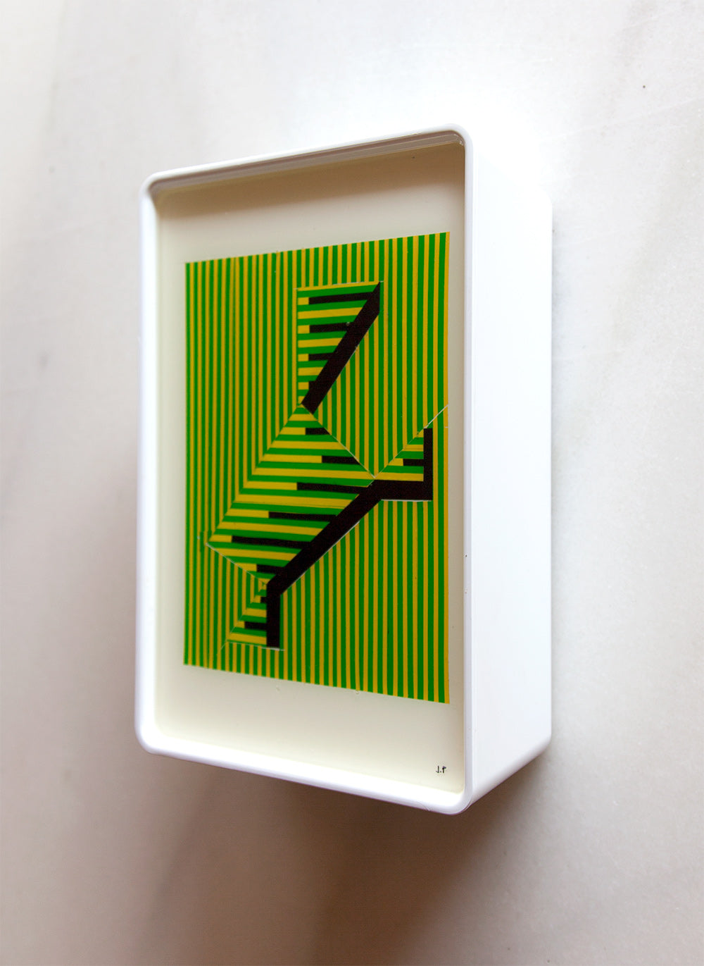 The pieces are designed to be both wall-mounted and free-standing, with the box's unique shape allowing for a gentle incline that enhances the viewing experience.
