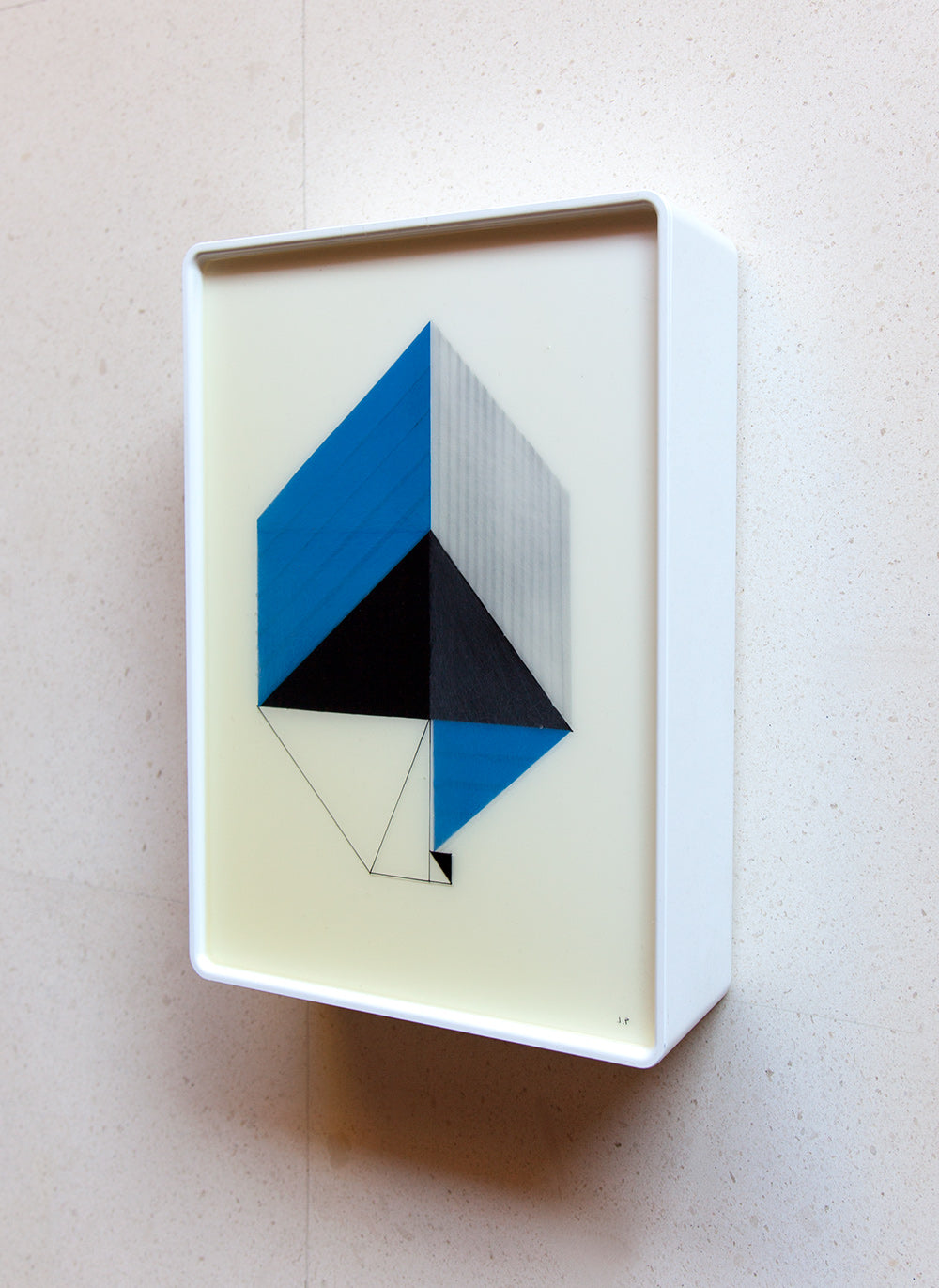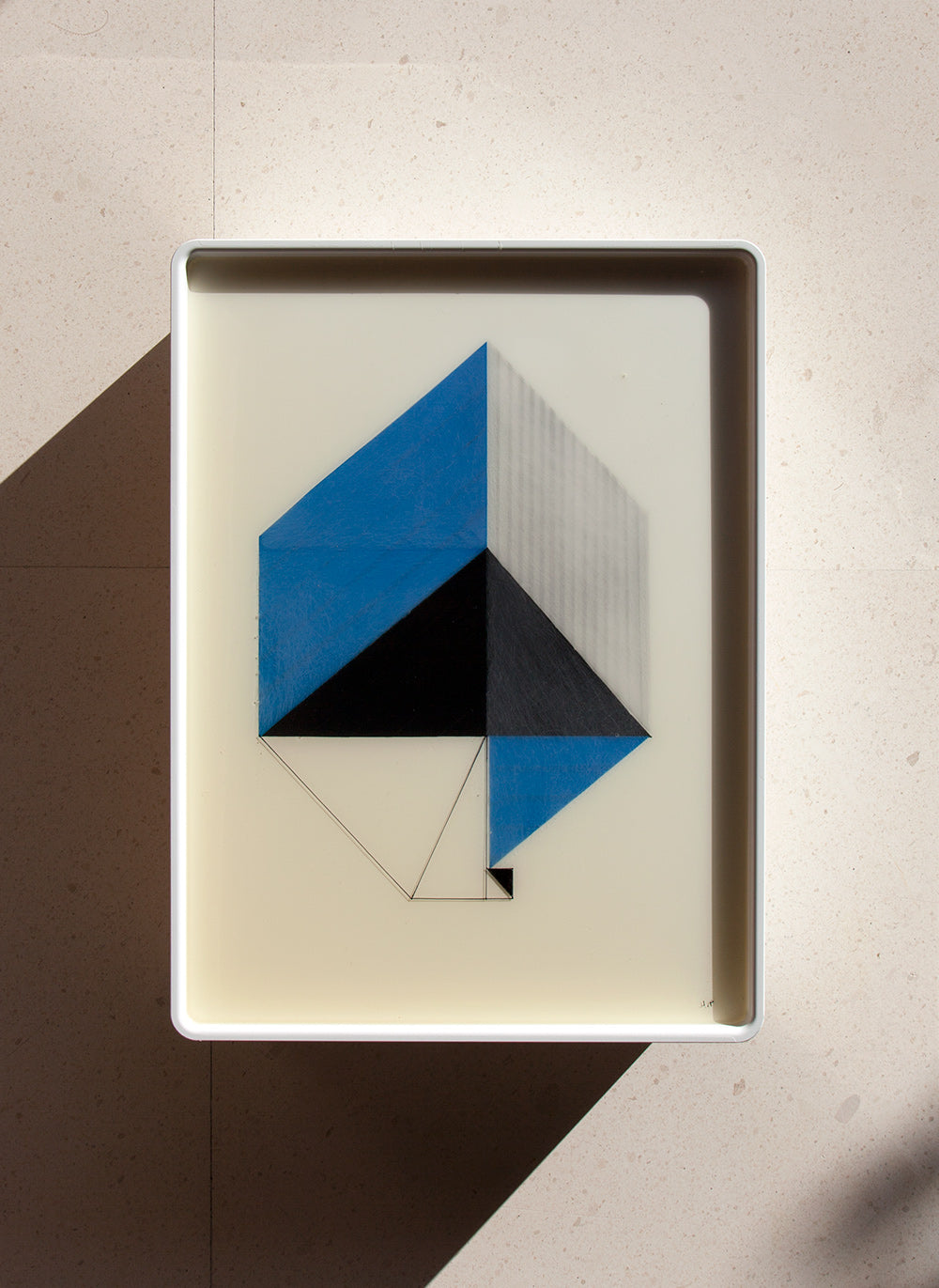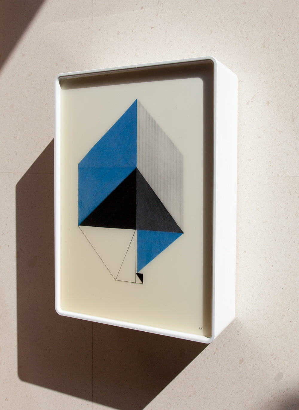 The pieces are designed to be both wall-mounted and free-standing, with the box's unique shape allowing for a gentle incline that enhances the viewing experience.