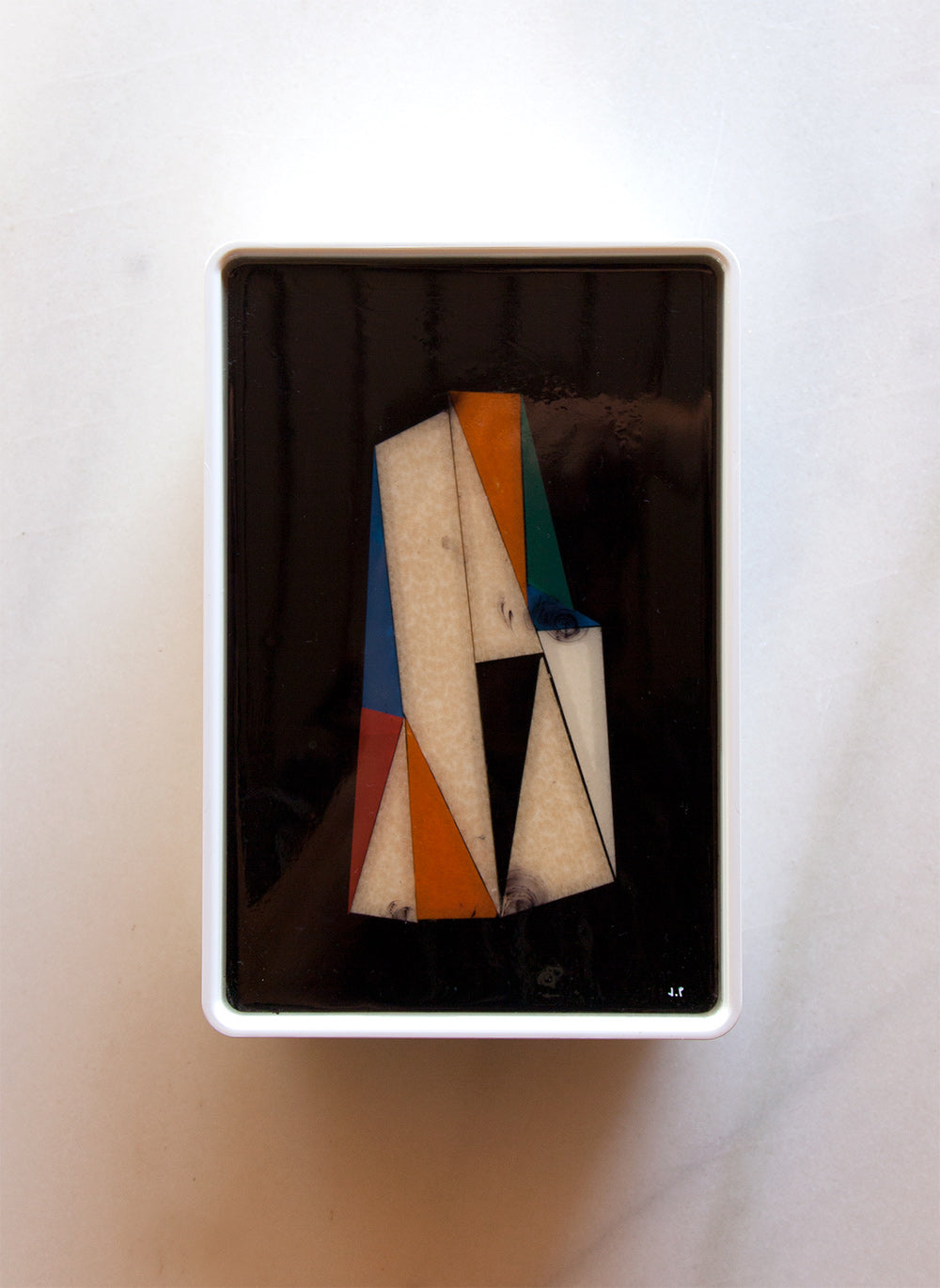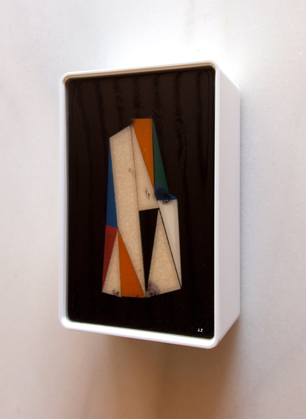A series of artworks created using Ikea PVC boxes as a support, exploring a variety of mixed media techniques that combine collage, ink drawing, and resin. The resin is used both to seal the composition and to create subtle layers of depth, often resulting in irregular and imperfect finishes that embrace the experimental nature of the medium.