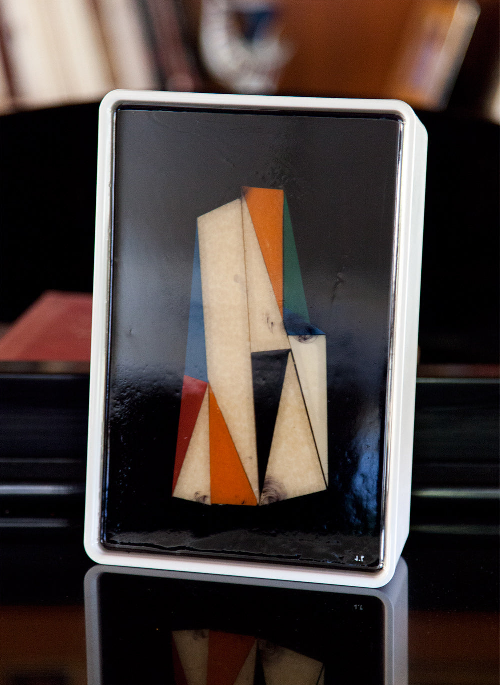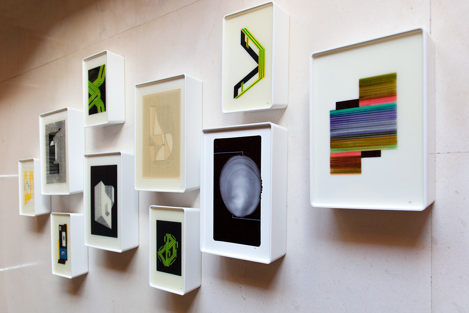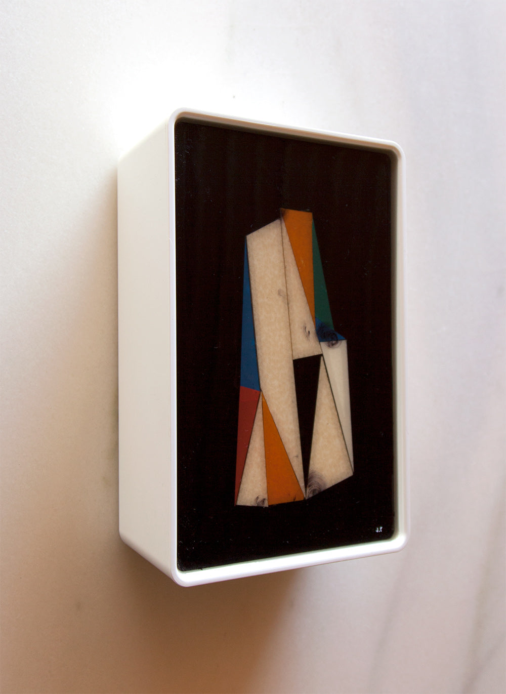 The pieces are designed to be both wall-mounted and free-standing, with the box's unique shape allowing for a gentle incline that enhances the viewing experience.