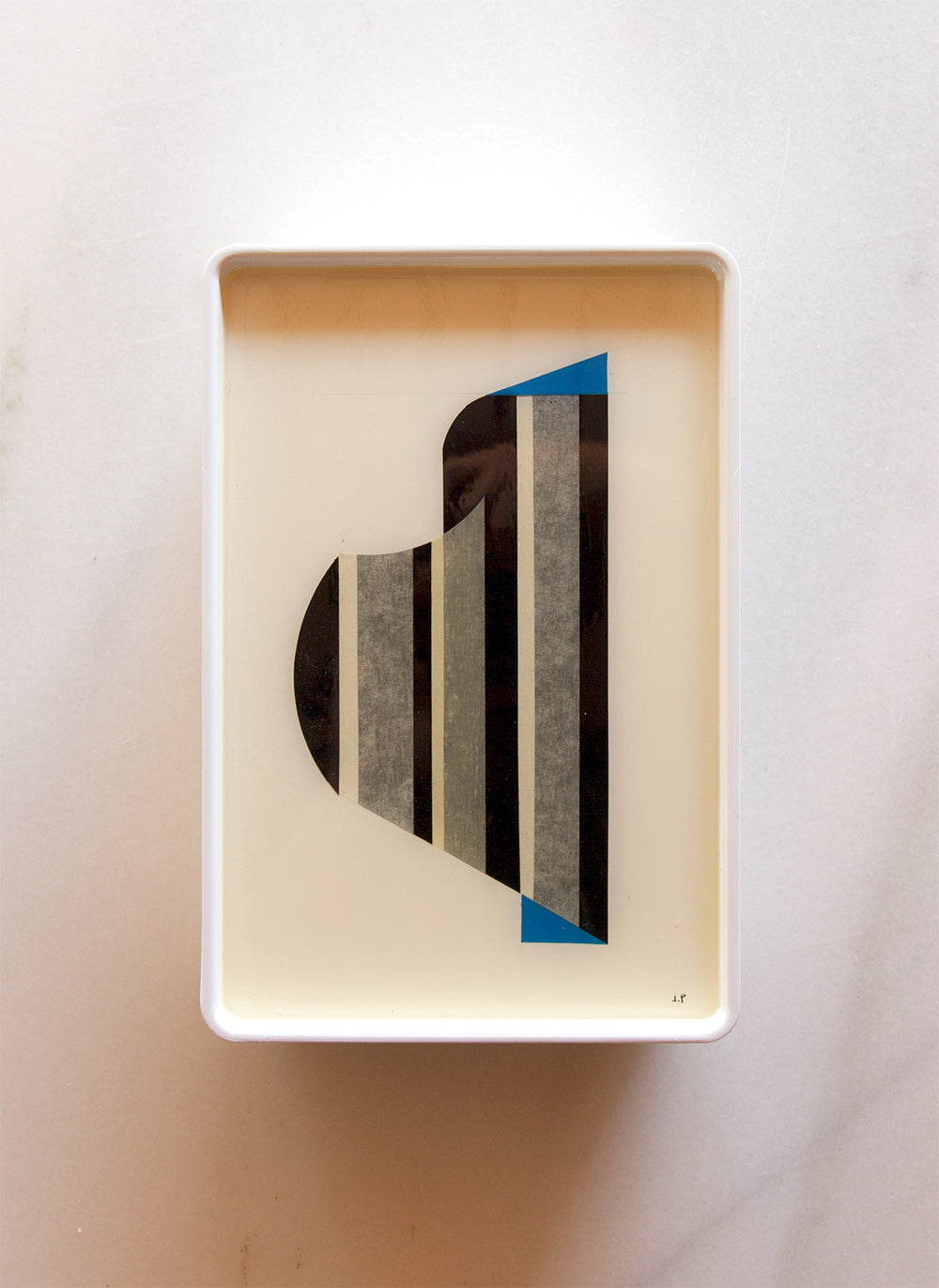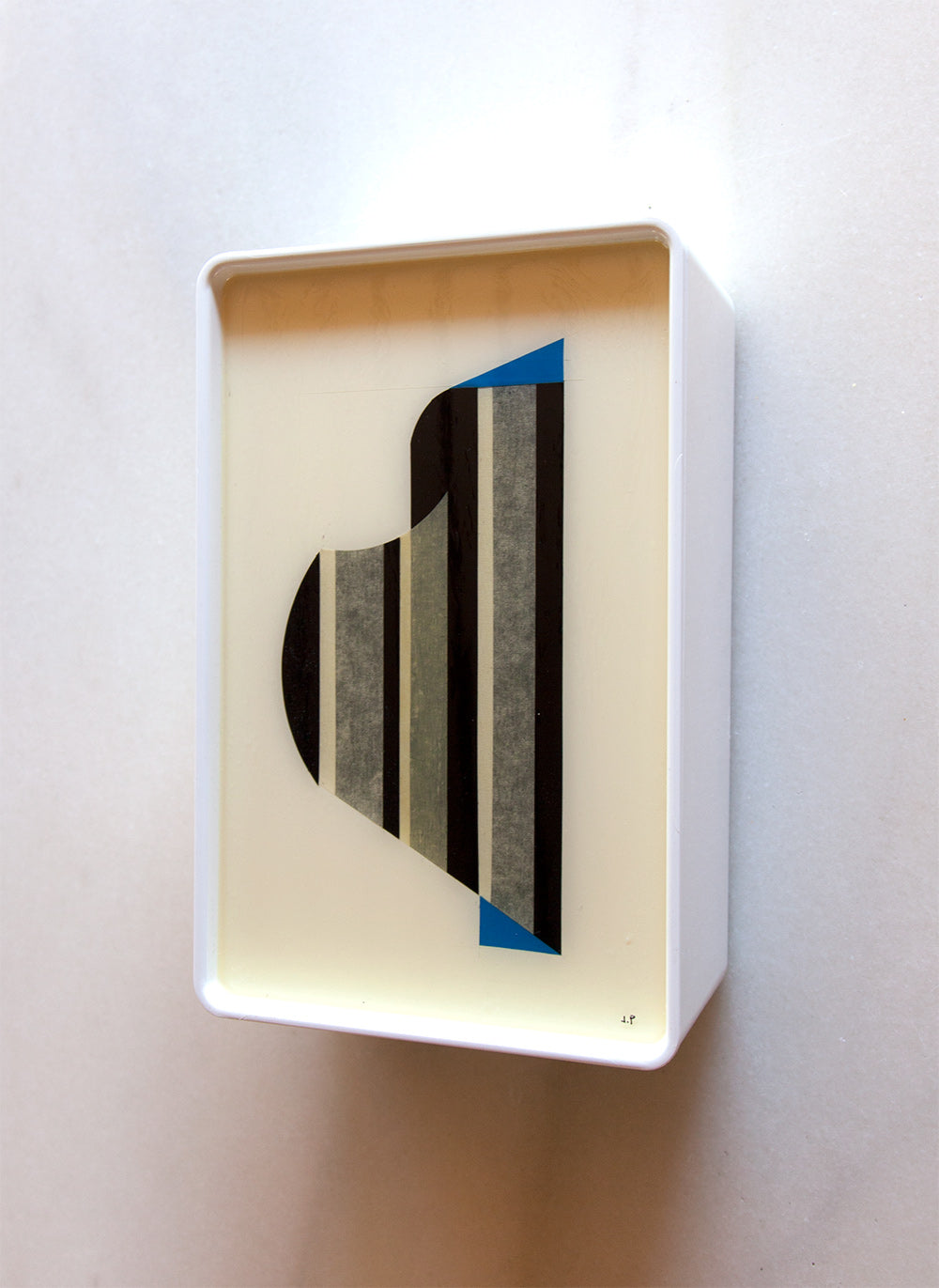 A series of artworks created using Ikea PVC boxes as a support, exploring a variety of mixed media techniques that combine collage, ink drawing, and resin. The resin is used both to seal the composition and to create subtle layers of depth, often resulting in irregular and imperfect finishes that embrace the experimental nature of the medium.