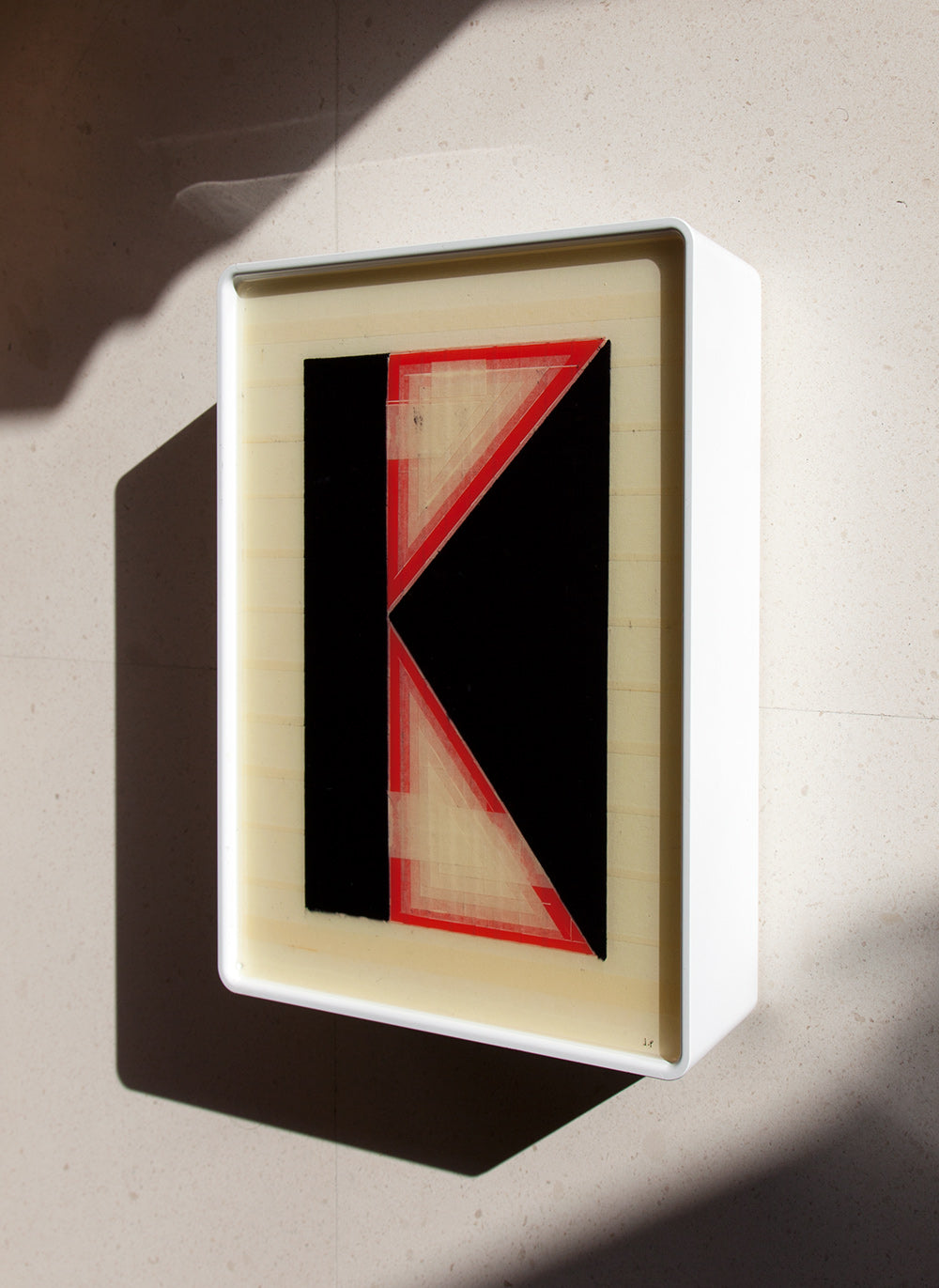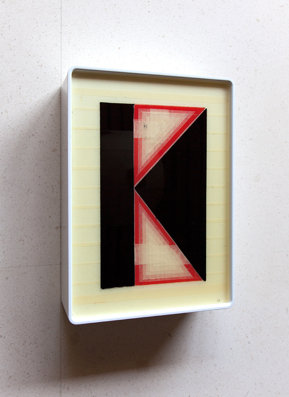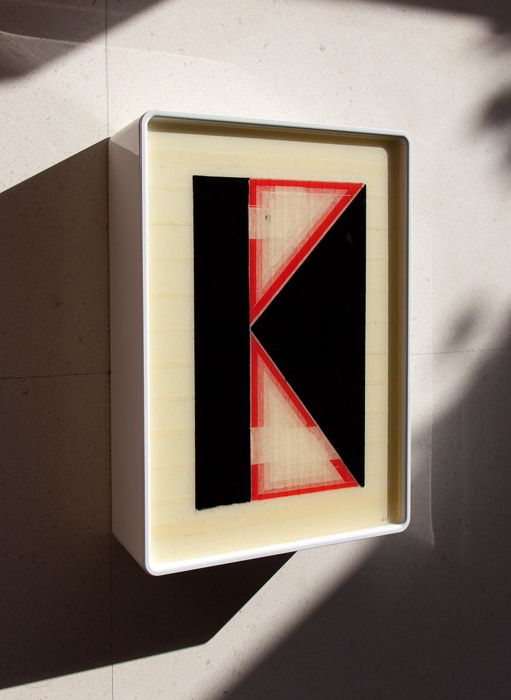The pieces are designed to be both wall-mounted and free-standing, with the box's unique shape allowing for a gentle incline that enhances the viewing experience.