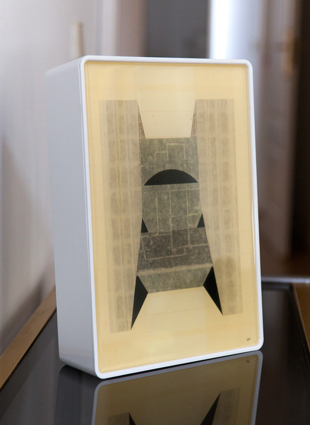 Materials: Mixed media and resin on Ikea pvc box.