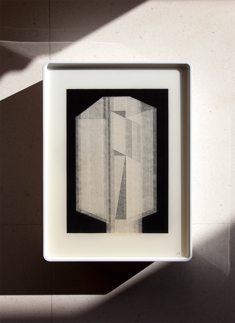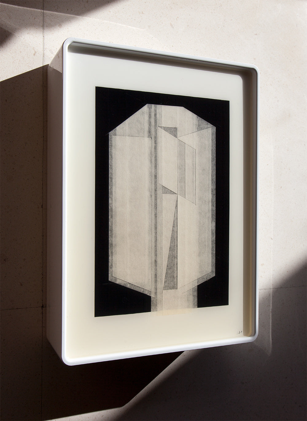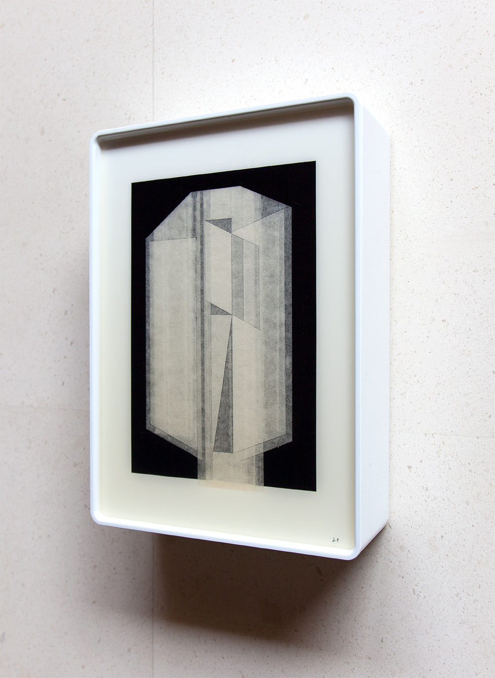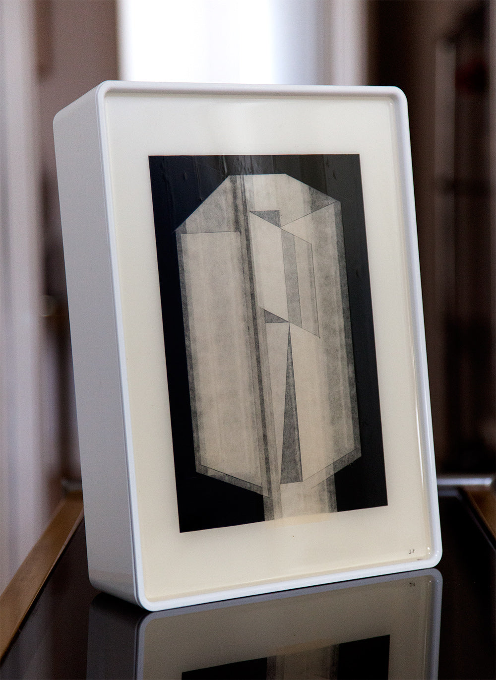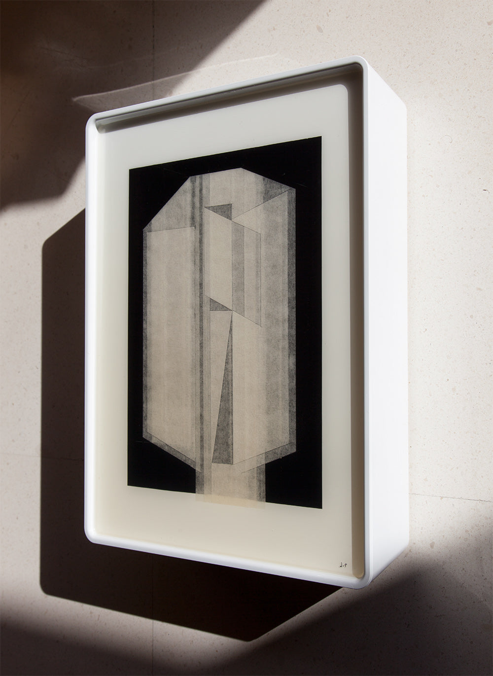 The pieces are designed to be both wall-mounted and free-standing, with the box's unique shape allowing for a gentle incline that enhances the viewing experience.