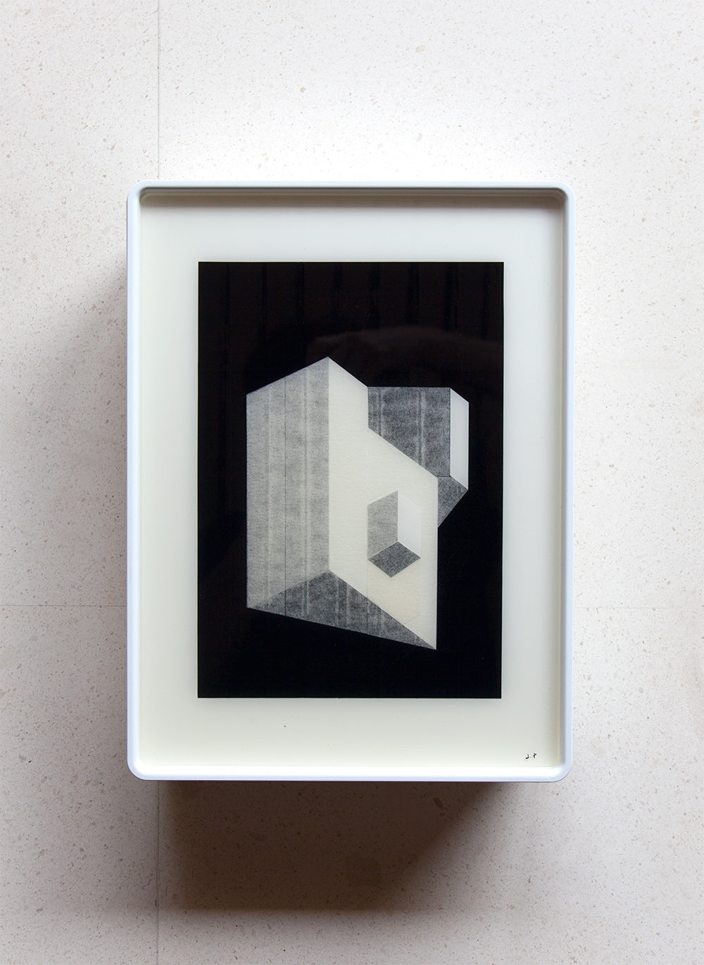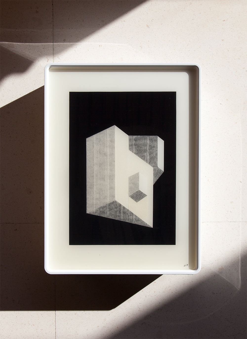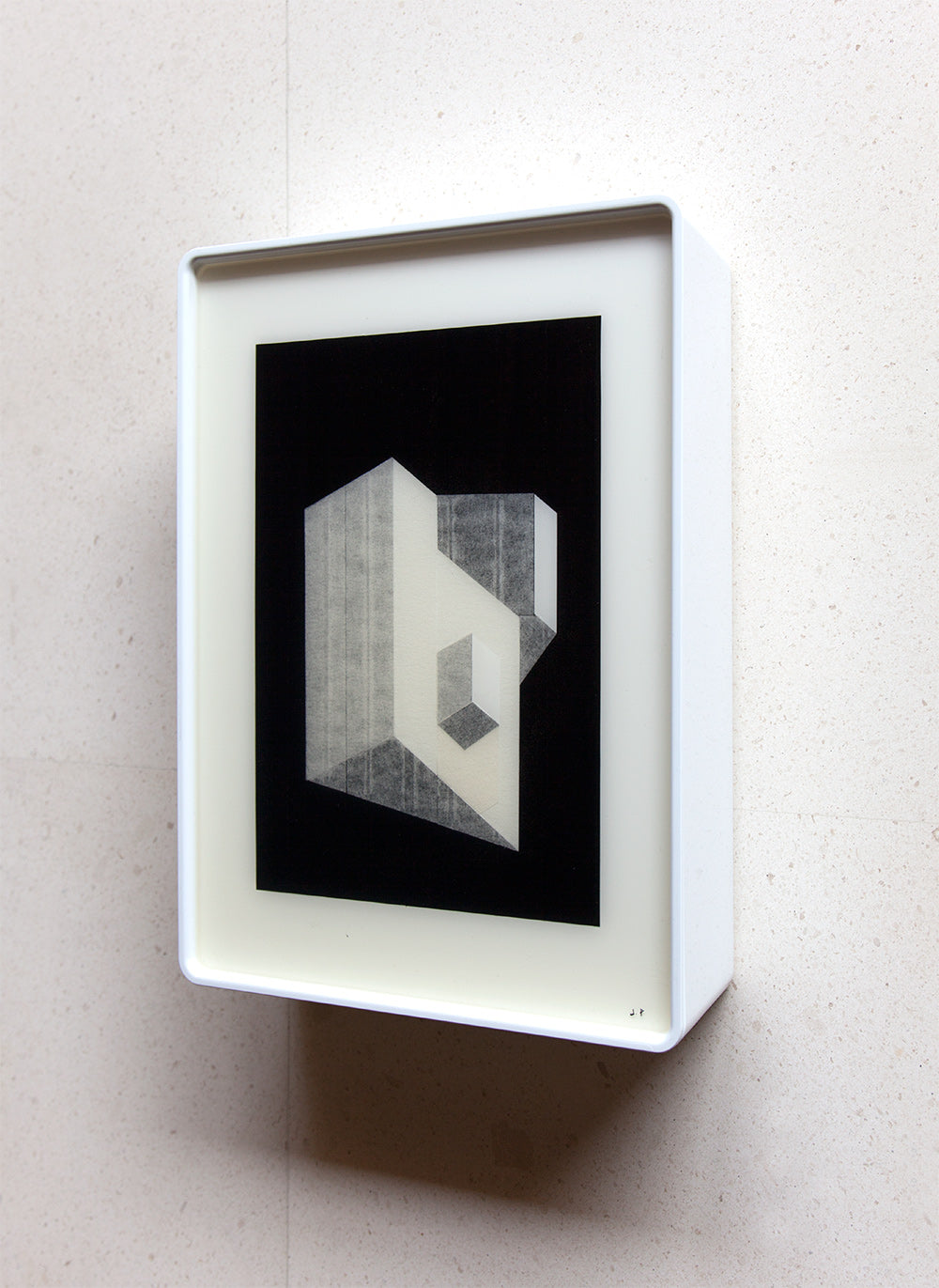 The pieces are designed to be both wall-mounted and free-standing, with the box's unique shape allowing for a gentle incline that enhances the viewing experience.