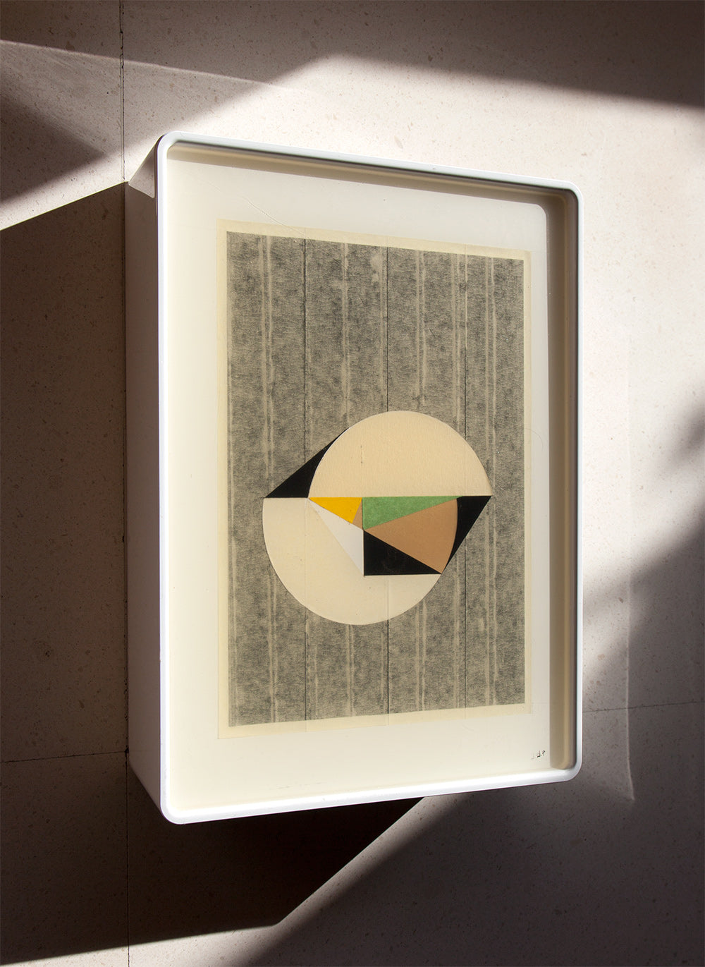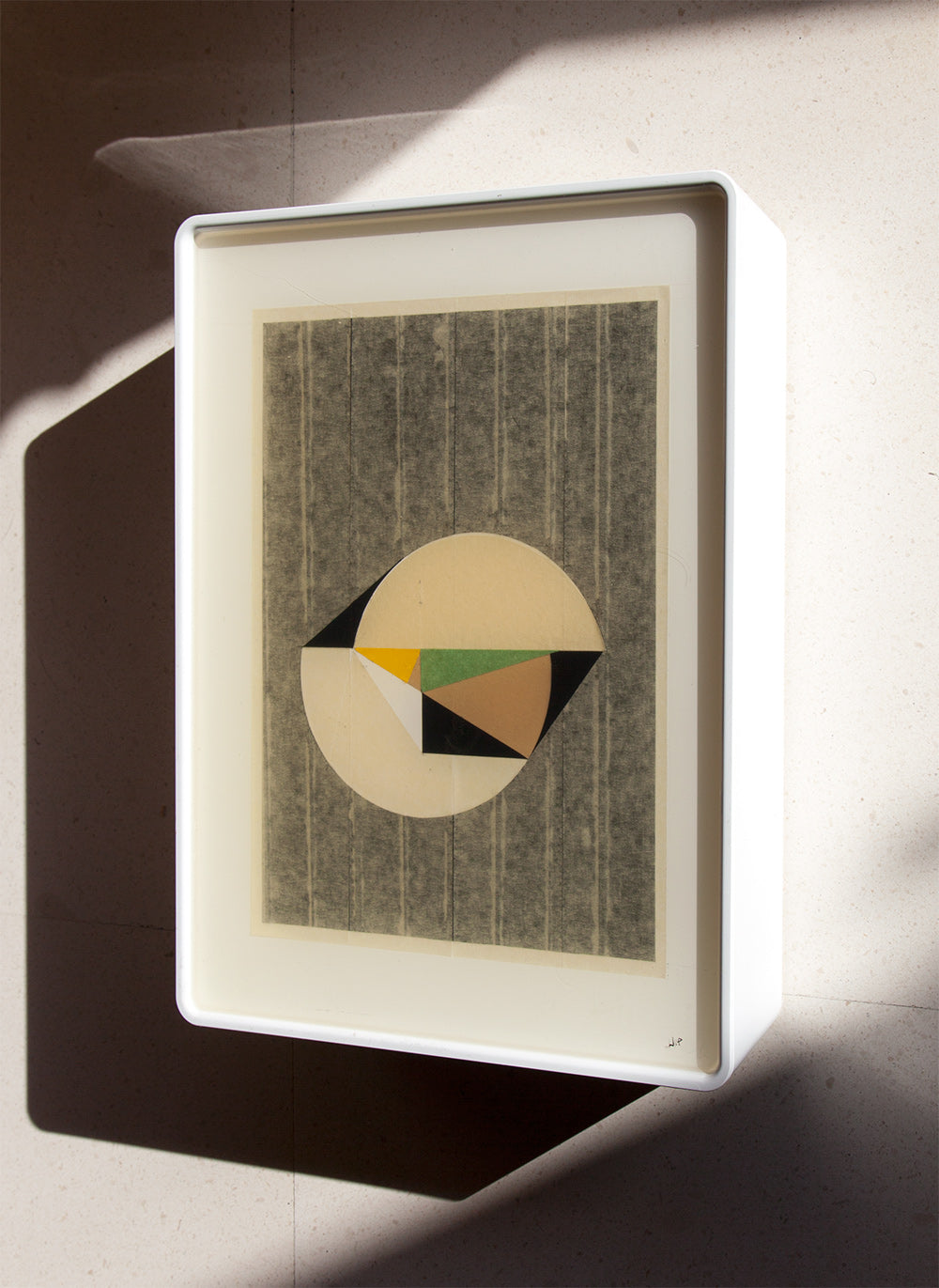 The pieces are designed to be both wall-mounted and free-standing, with the box's unique shape allowing for a gentle incline that enhances the viewing experience.