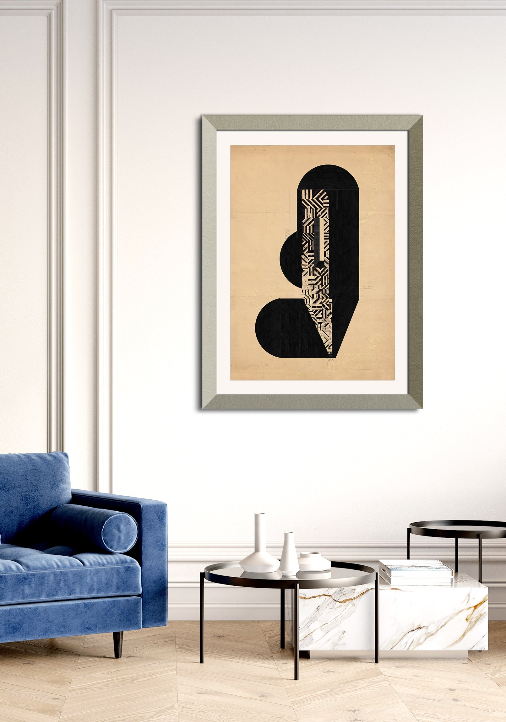 The image with the framed artwork is a simulation to provide a general sense of scale and framing options, suggesting a 10-15cm margin between the artwork and the frame, which could be achieved with a passepartout.