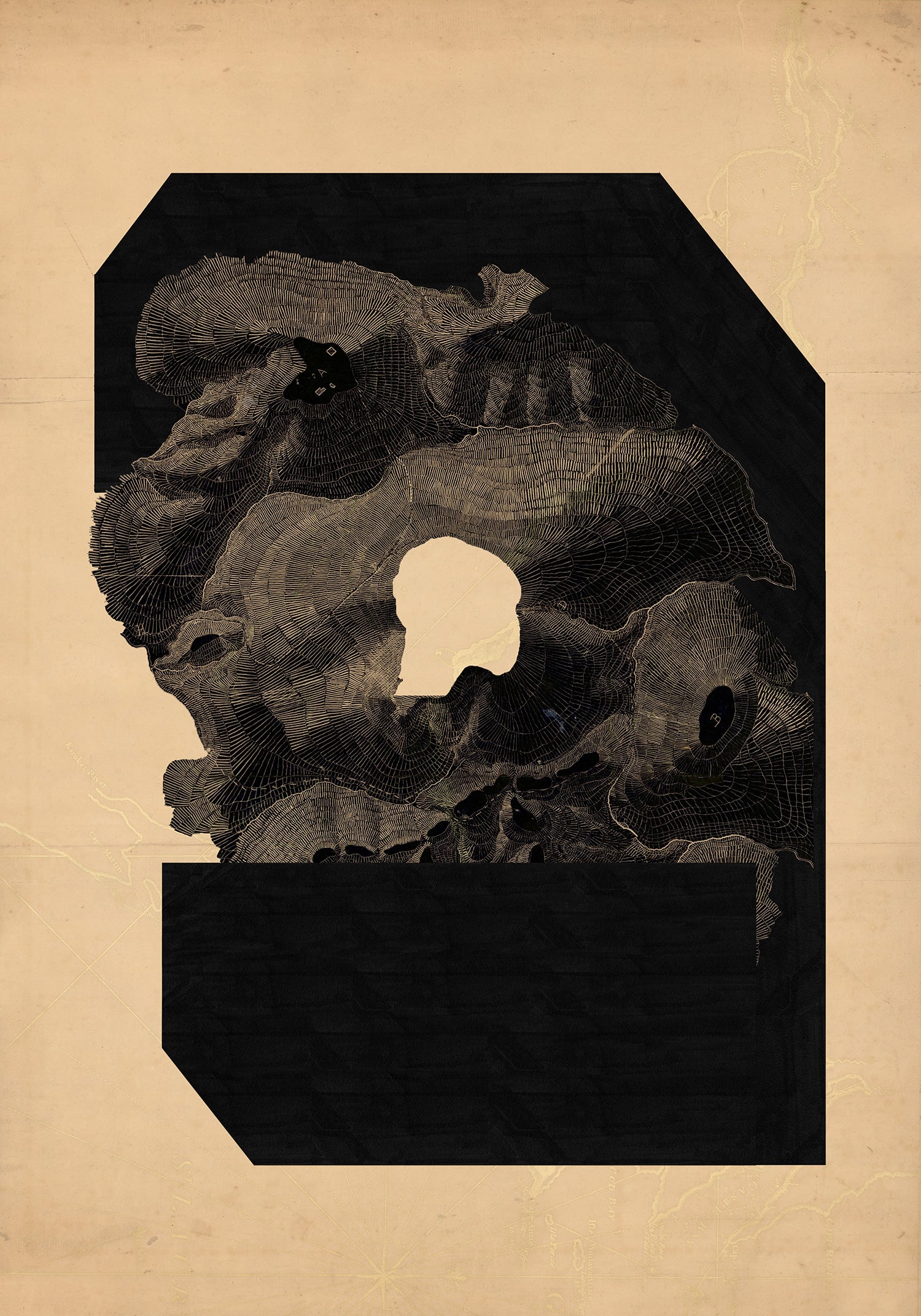 My intention was not to create recognizable maps but to use them as a creative starting point for each work.
