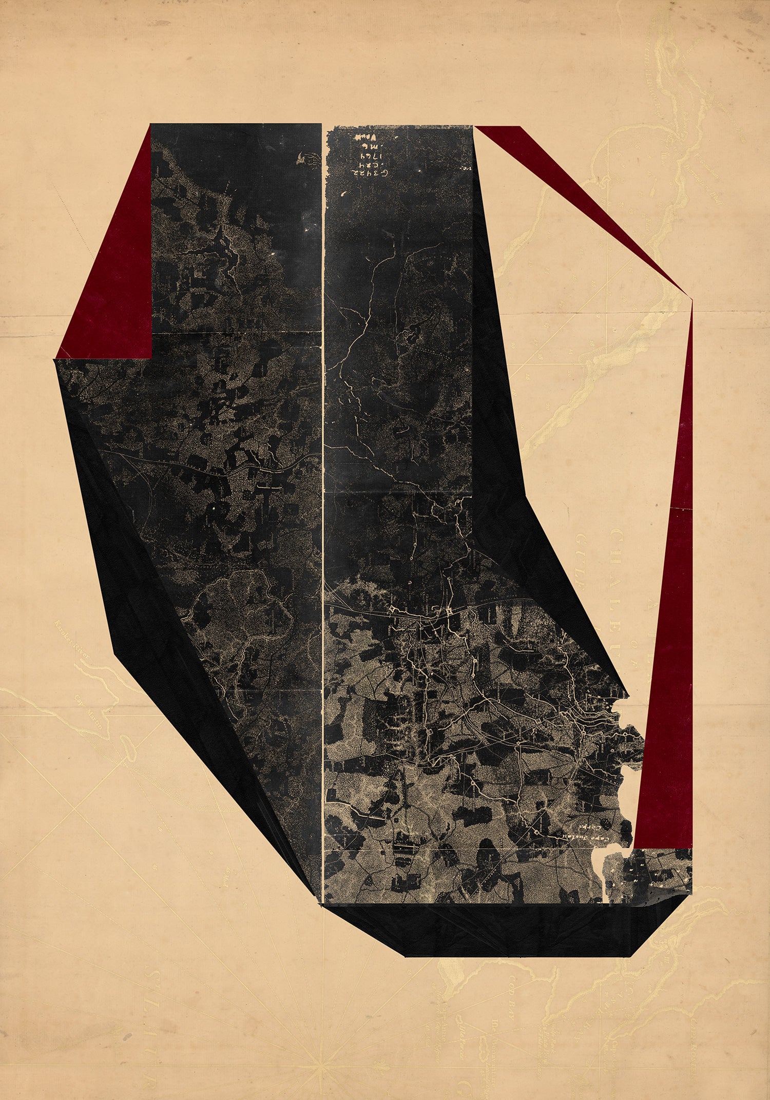 This collection comprises a series of artworks created with digital tools incorporating maps into their compositions.
