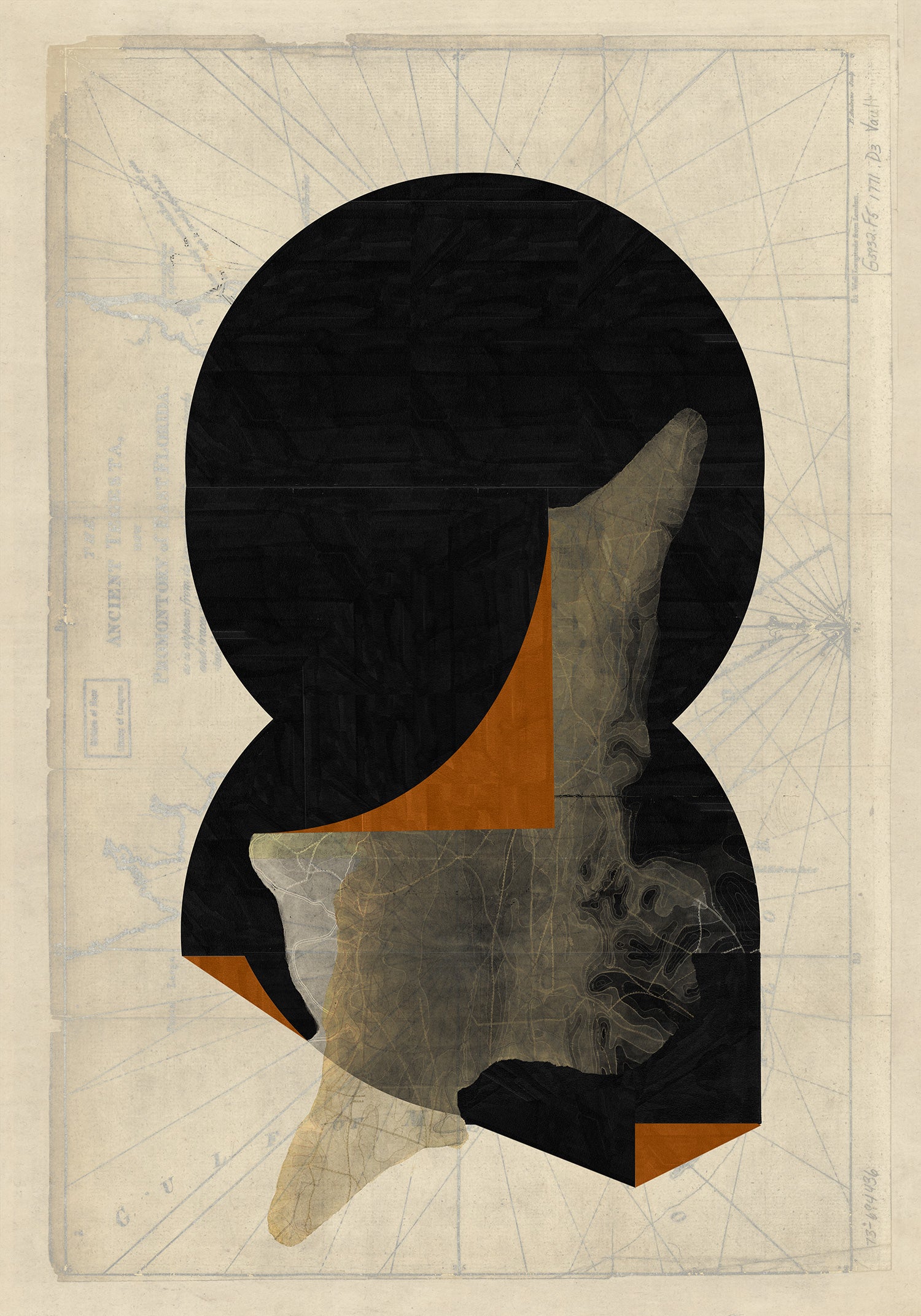 This collection comprises a series of artworks created with digital tools incorporating maps into their compositions.