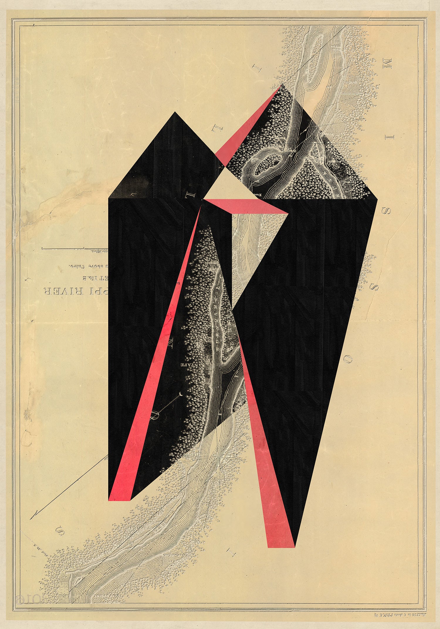 This collection comprises a series of artworks created with digital tools incorporating maps into their compositions.