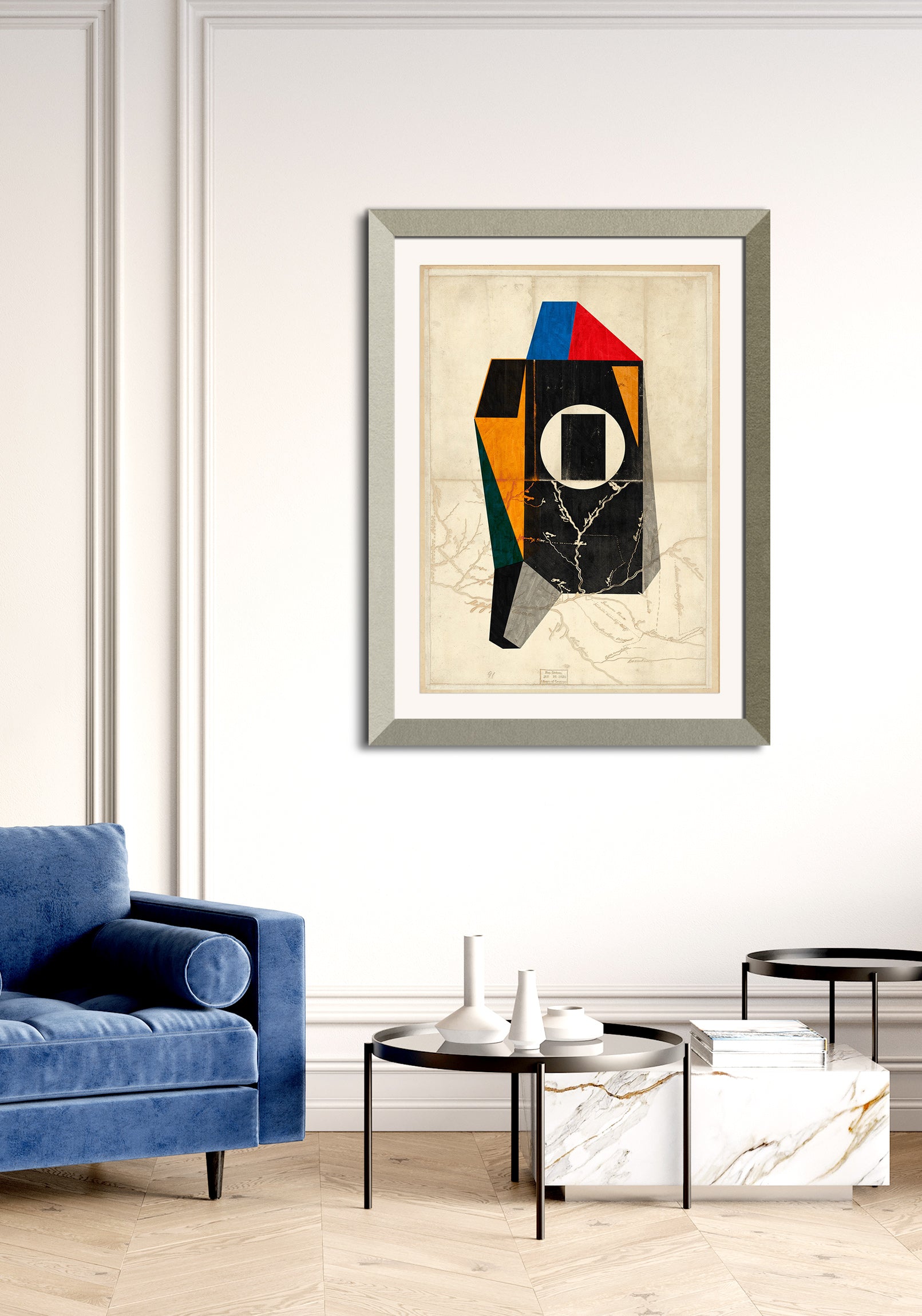 The image with the framed artwork is a simulation to provide a general sense of scale and framing options, suggesting a 10-15cm margin between the artwork and the frame, which could be achieved with a passepartout.
