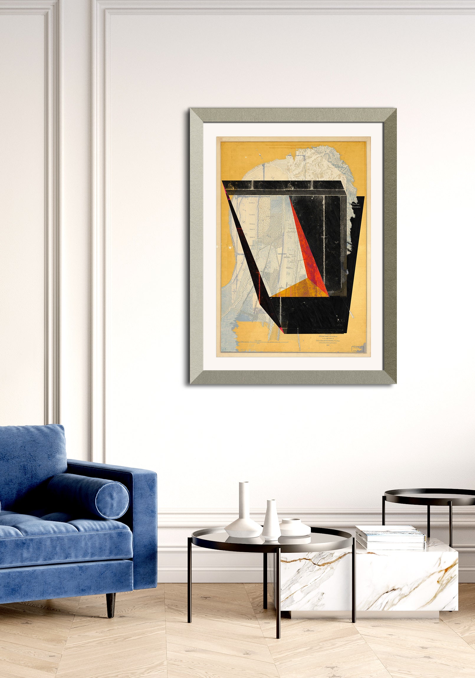 The image with the framed artwork is a simulation to provide a general sense of scale and framing options, suggesting a 10-15cm margin between the artwork and the frame, which could be achieved with a passepartout.