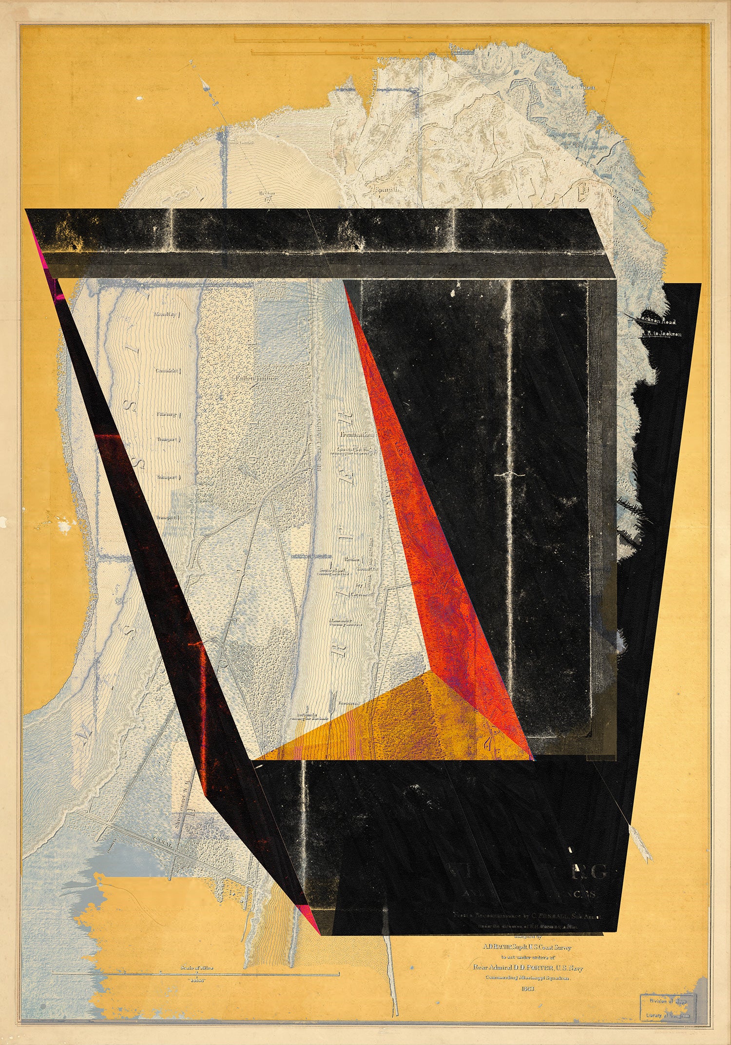 This collection comprises a series of artworks created with digital tools incorporating maps into their compositions.