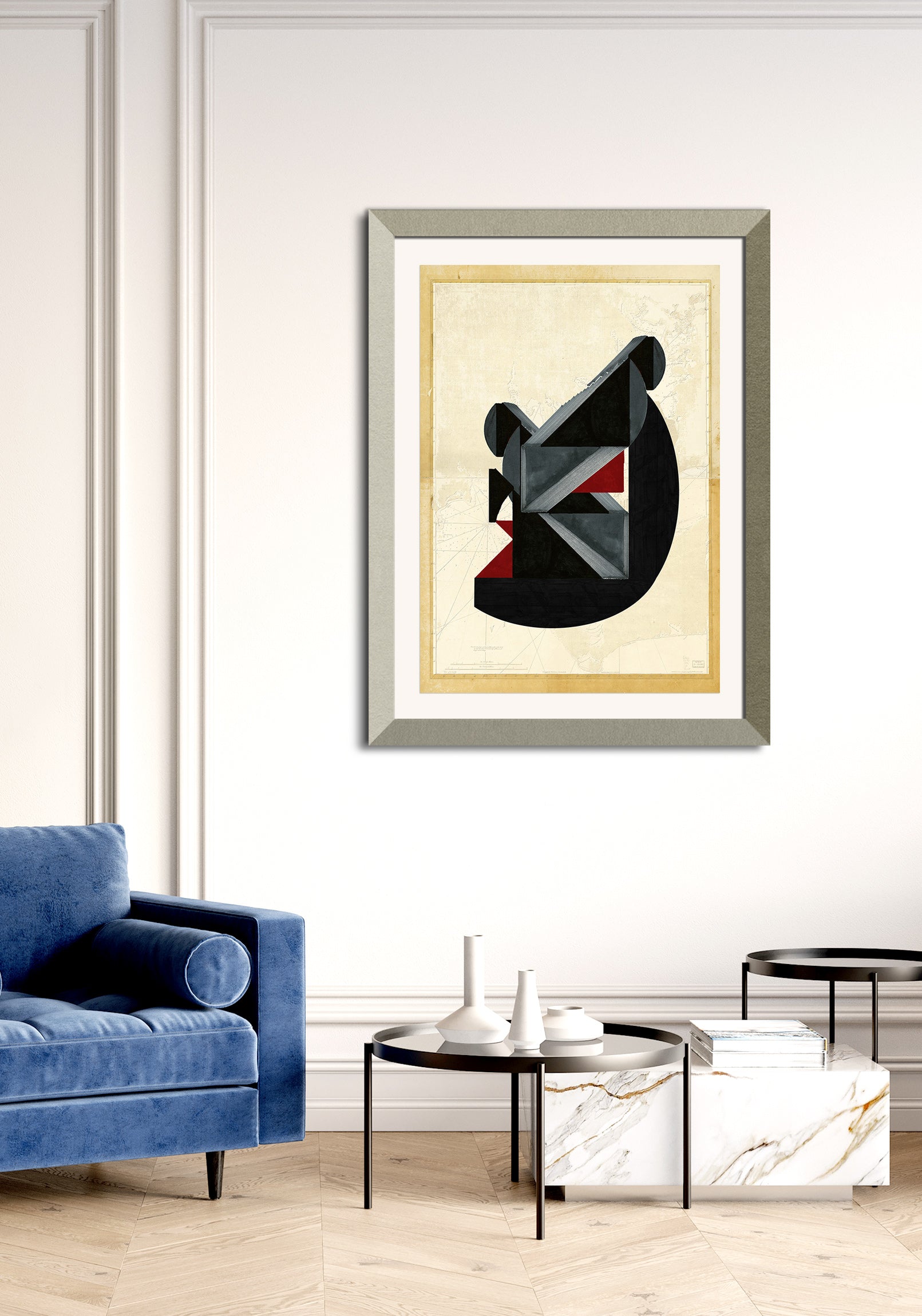 The image with the framed artwork is a simulation to provide a general sense of scale and framing options, suggesting a 10-15cm margin between the artwork and the frame, which could be achieved with a passepartout.