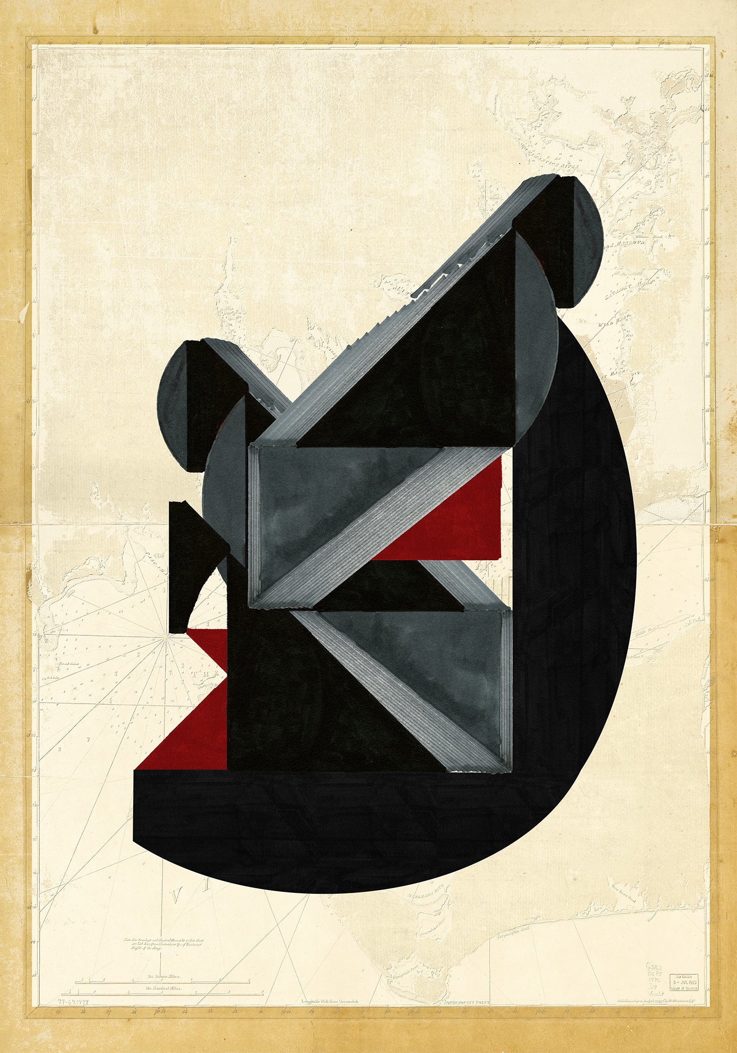 This collection comprises a series of artworks created with digital tools incorporating maps into their compositions.