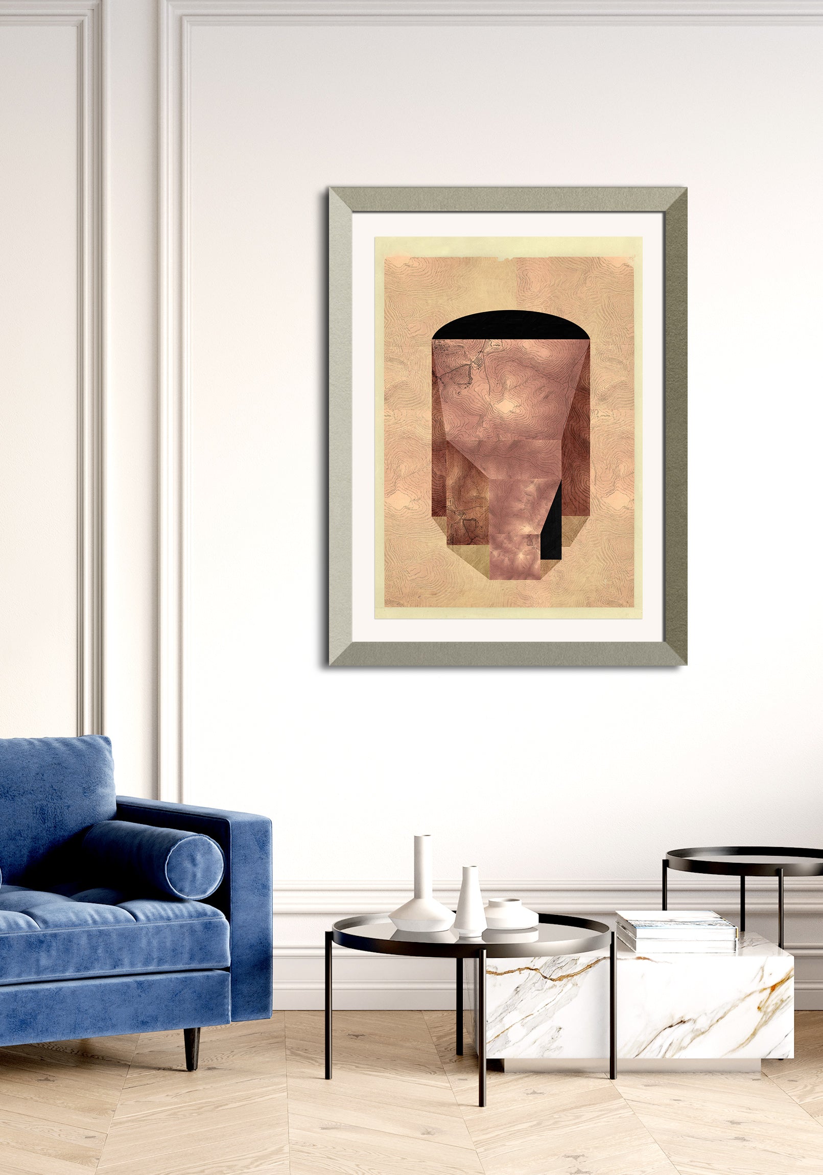 The image with the framed artwork is a simulation to provide a general sense of scale and framing options, suggesting a 10-15cm margin between the artwork and the frame, which could be achieved with a passepartout.