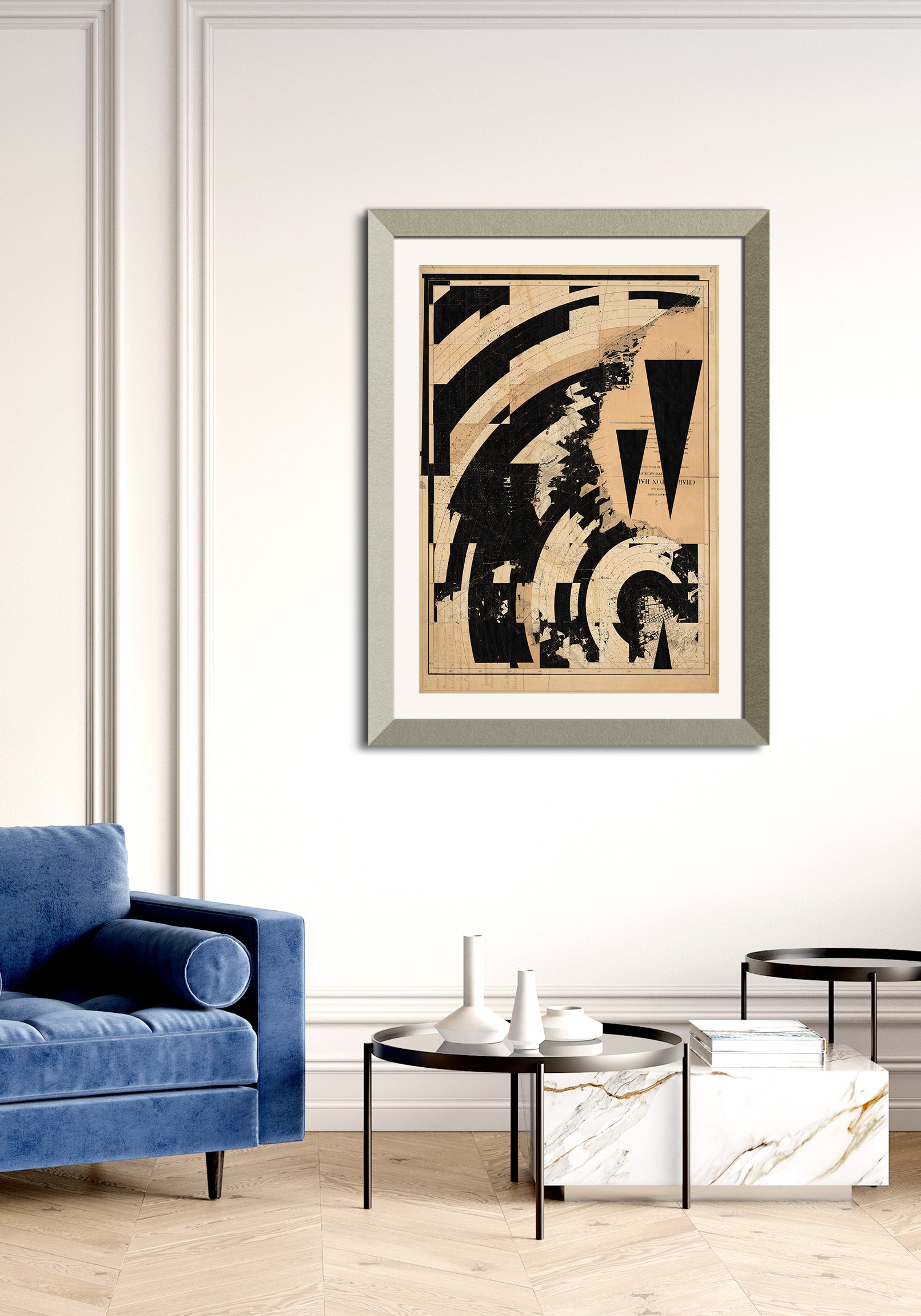 The image with the framed artwork is a simulation to provide a general sense of scale and framing options, suggesting a 10-15cm margin between the artwork and the frame, which could be achieved with a passepartout.