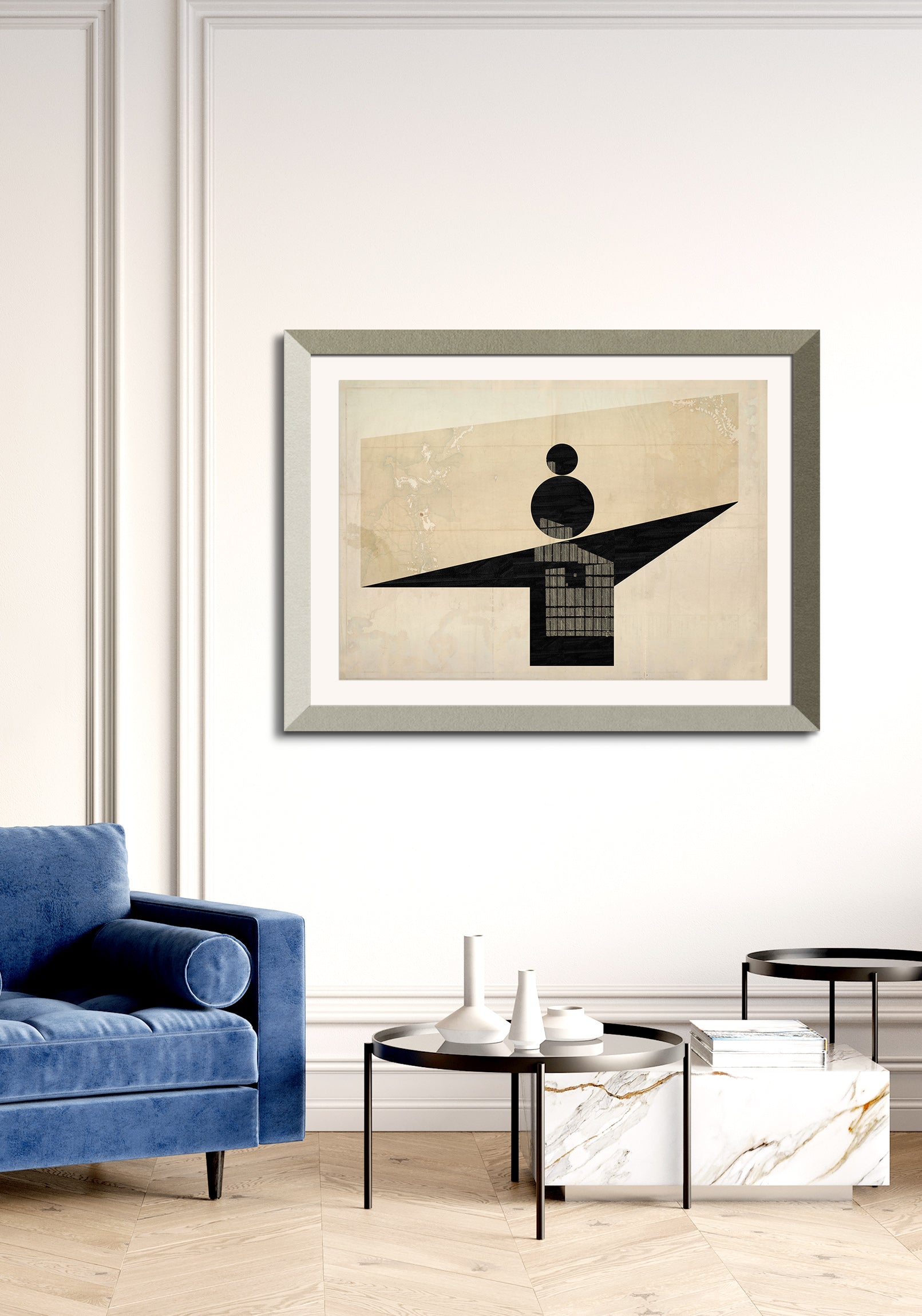 The image with the framed artwork is a simulation to provide a general sense of scale and framing options, suggesting a 10-15cm margin between the artwork and the frame, which could be achieved with a passepartout.