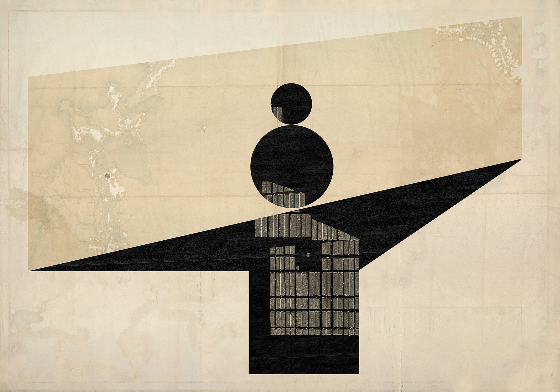 This collection comprises a series of artworks created with digital tools incorporating maps into their compositions.