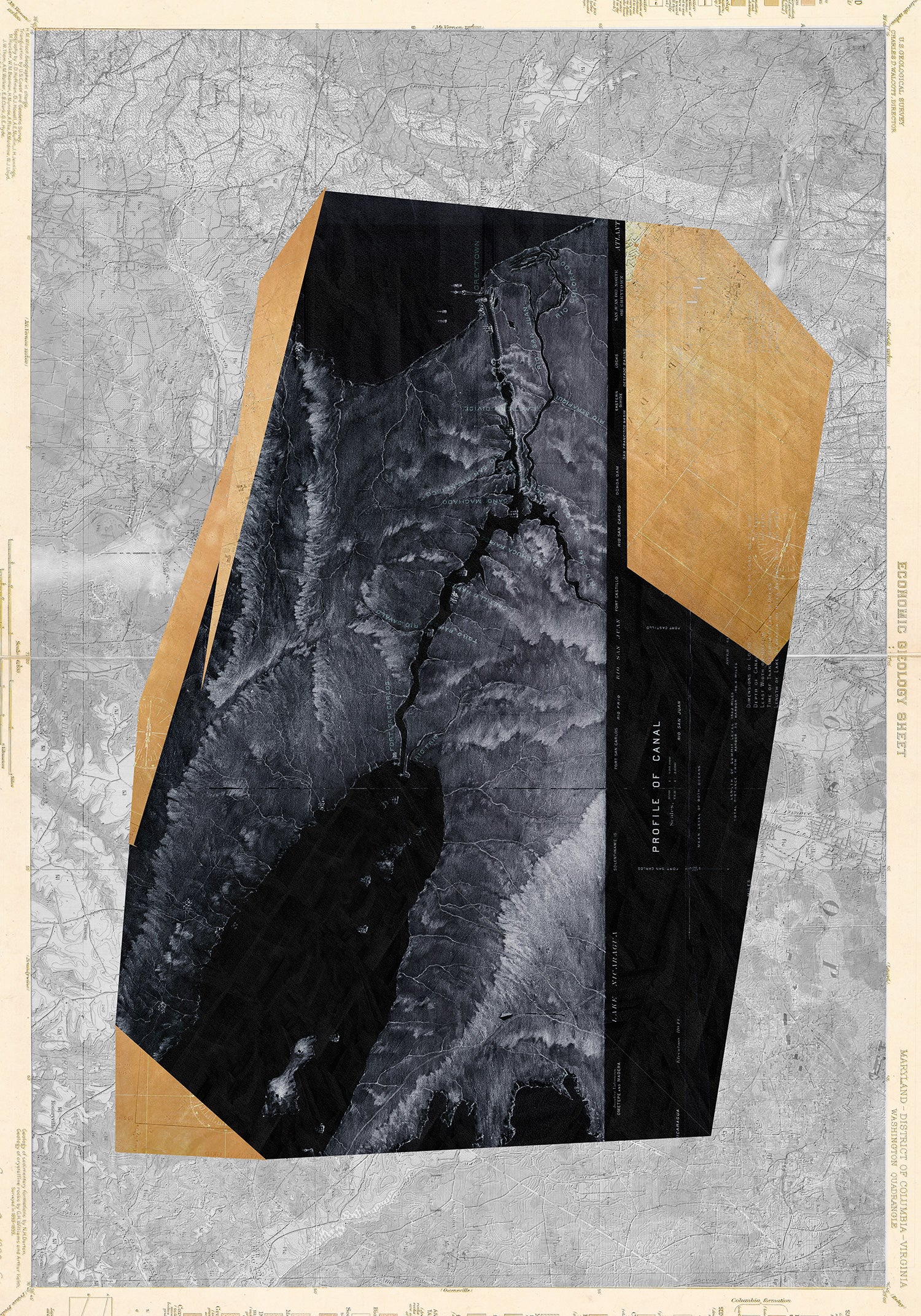 This collection comprises a series of artworks created with digital tools incorporating maps into their compositions.