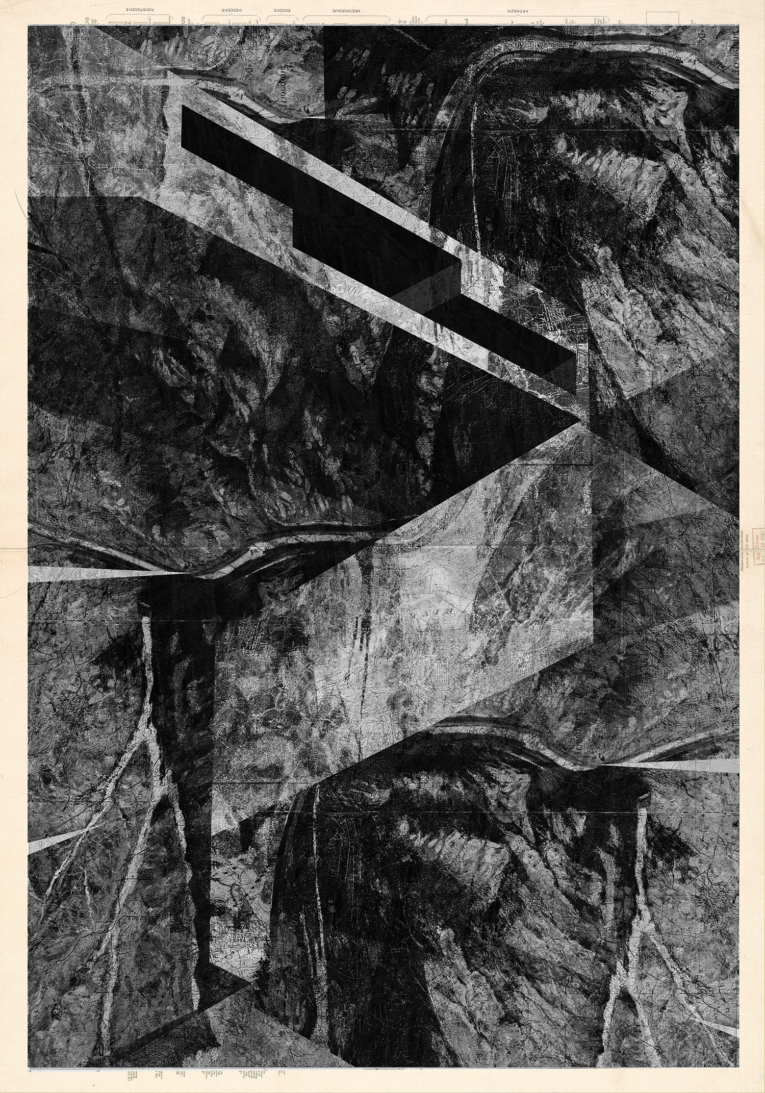 This collection comprises a series of artworks created with digital tools incorporating maps into their compositions.
