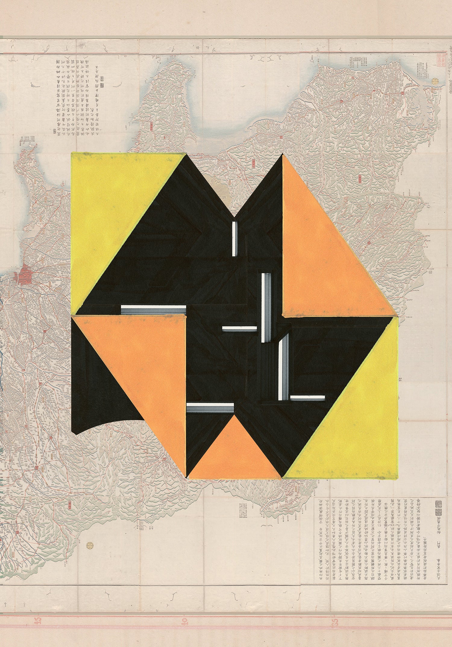 This collection comprises a series of artworks created with digital tools incorporating maps into their compositions.
