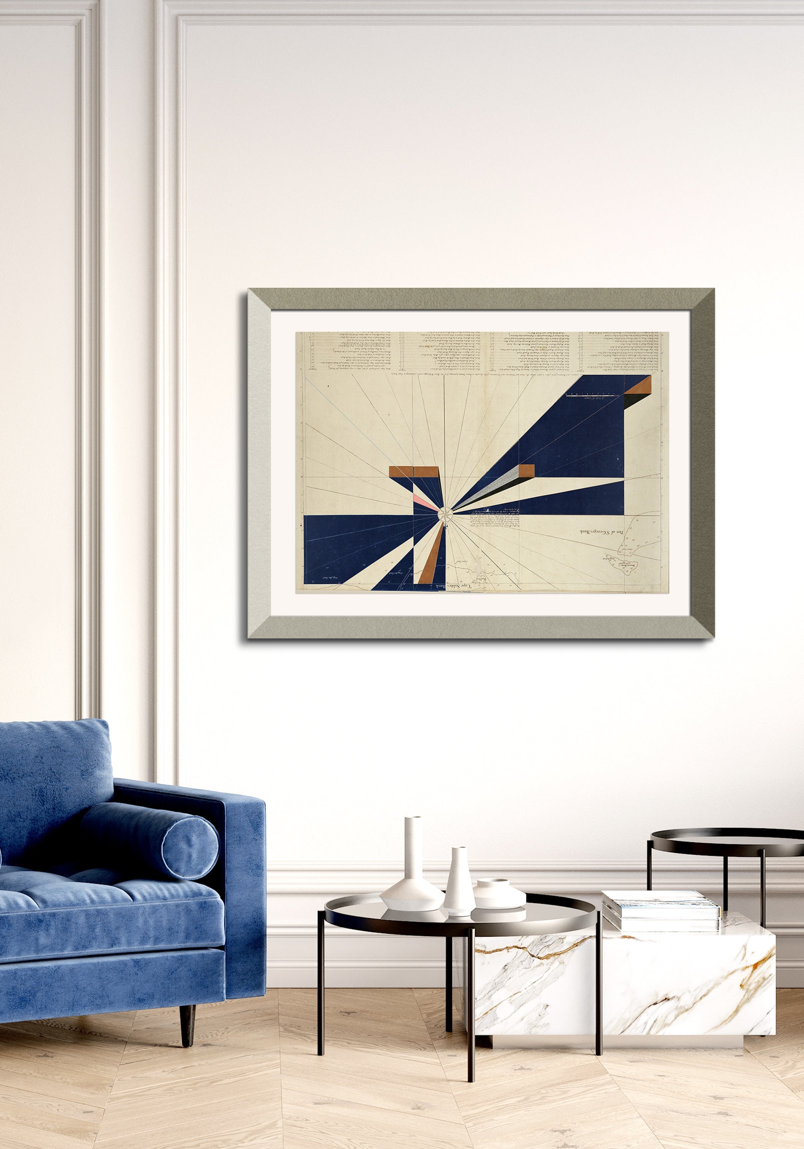 The image with the framed artwork is a simulation to provide a general sense of scale and framing options, suggesting a 10-15cm margin between the artwork and the frame, which could be achieved with a passepartout, or a foam on the background.